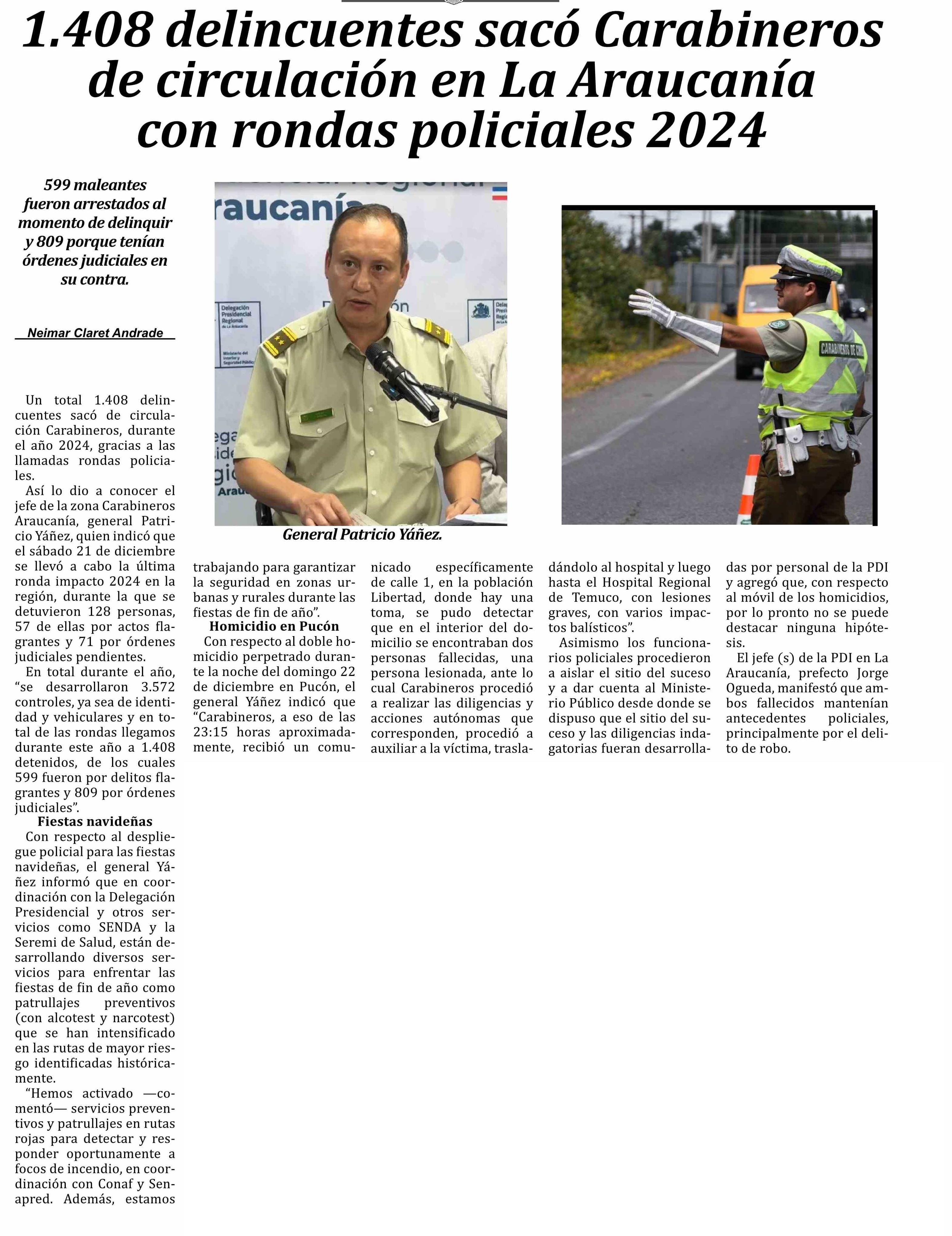 1.408 delincuentes sacó Carabineros de circulación en La Araucanía con rondas policiales 2024