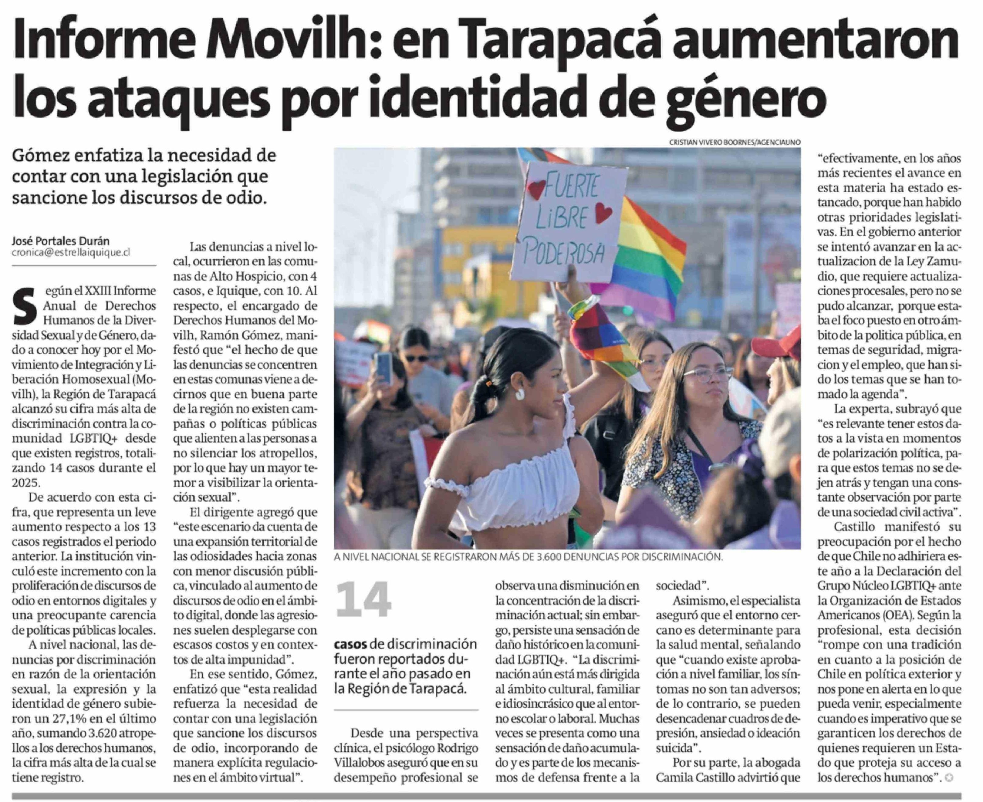 Informe Movilh: en Tarapacá aumentaron los ataques por identidad de género