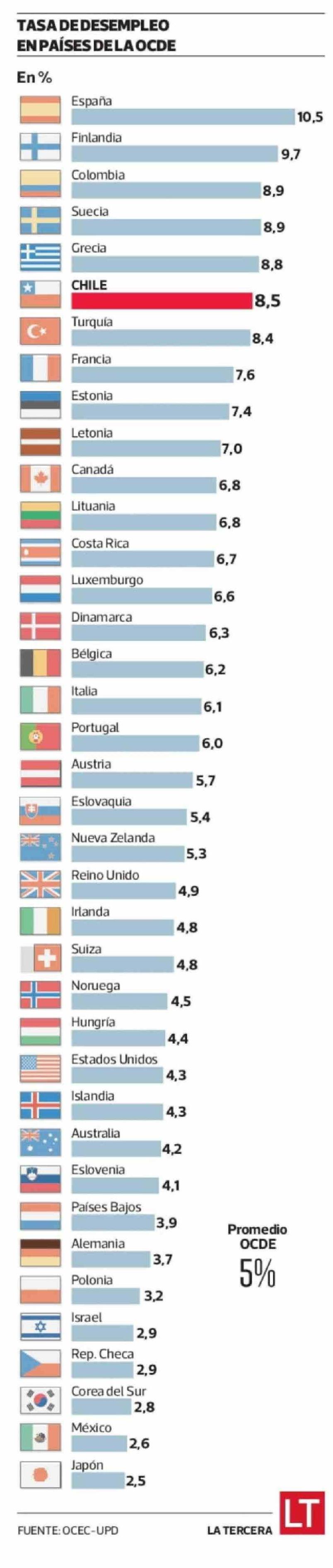 Chile fue el sexto país de la Ocde con la tasa de desempleo más alta en 2025