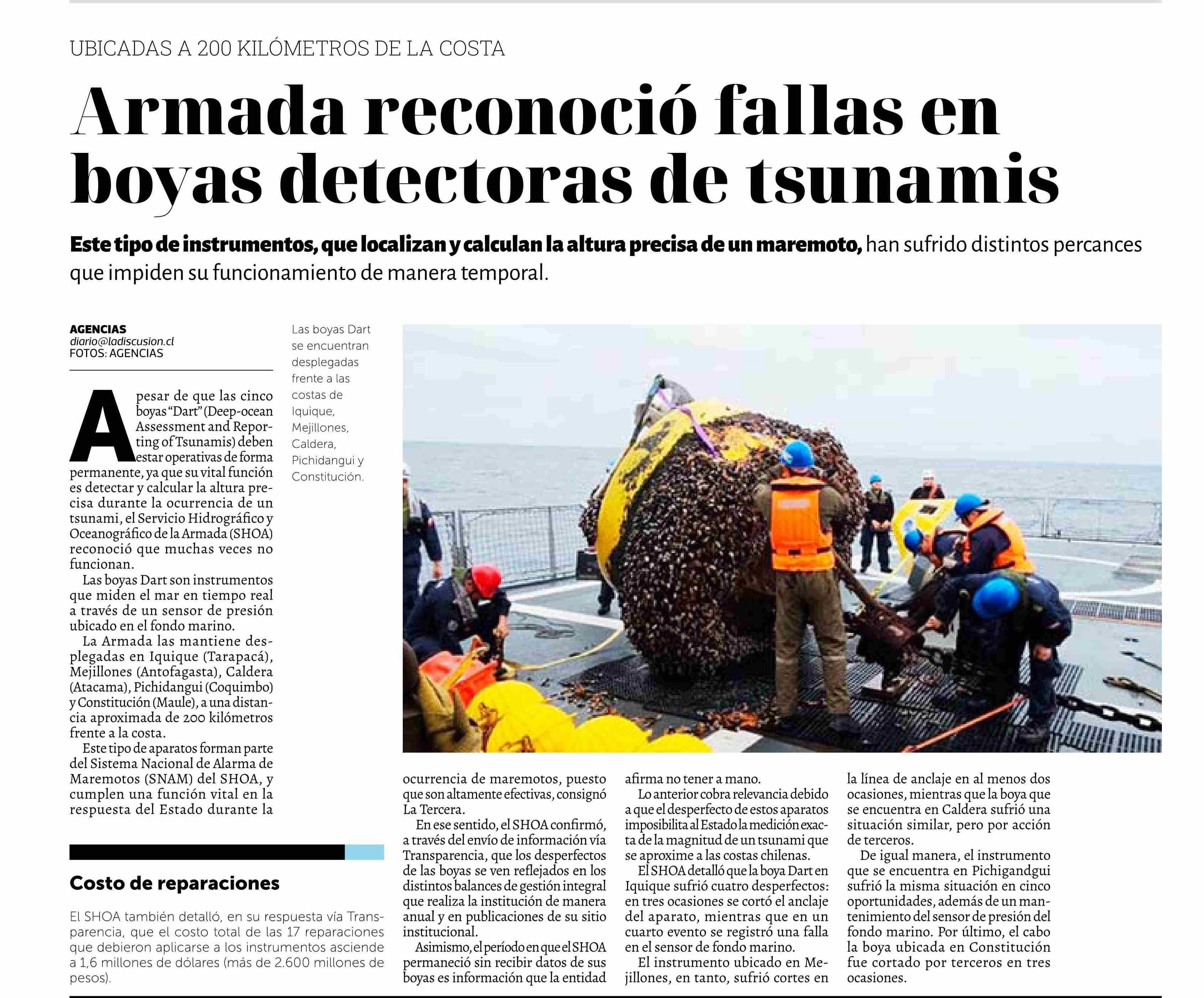 Armada reconoció fallas en boyas detectoras de tsunamis