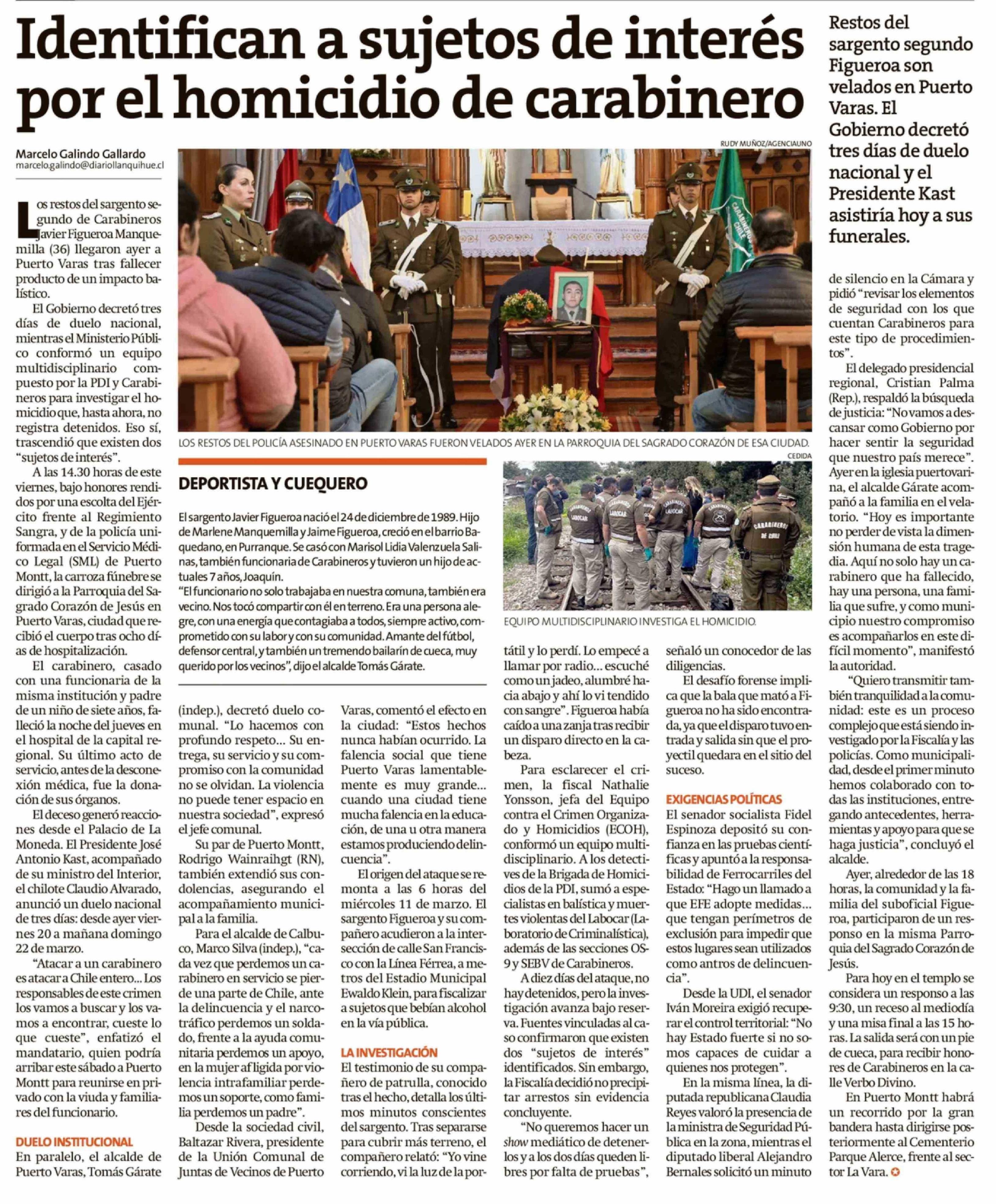 Identifican a sujetos de interés por el homicidio de carabinero
