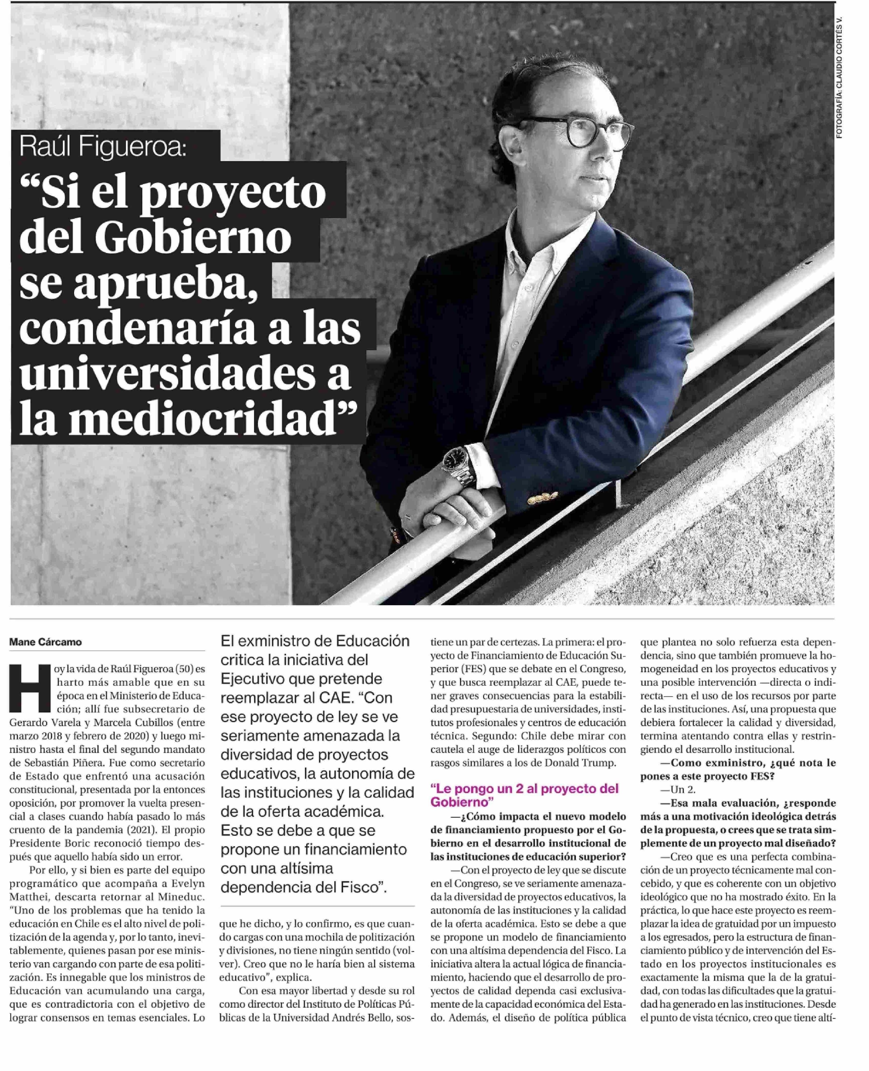 Título: “Si el proyecto del Gobierno se aprueba, condenaría a las universidades a la mediocridad”