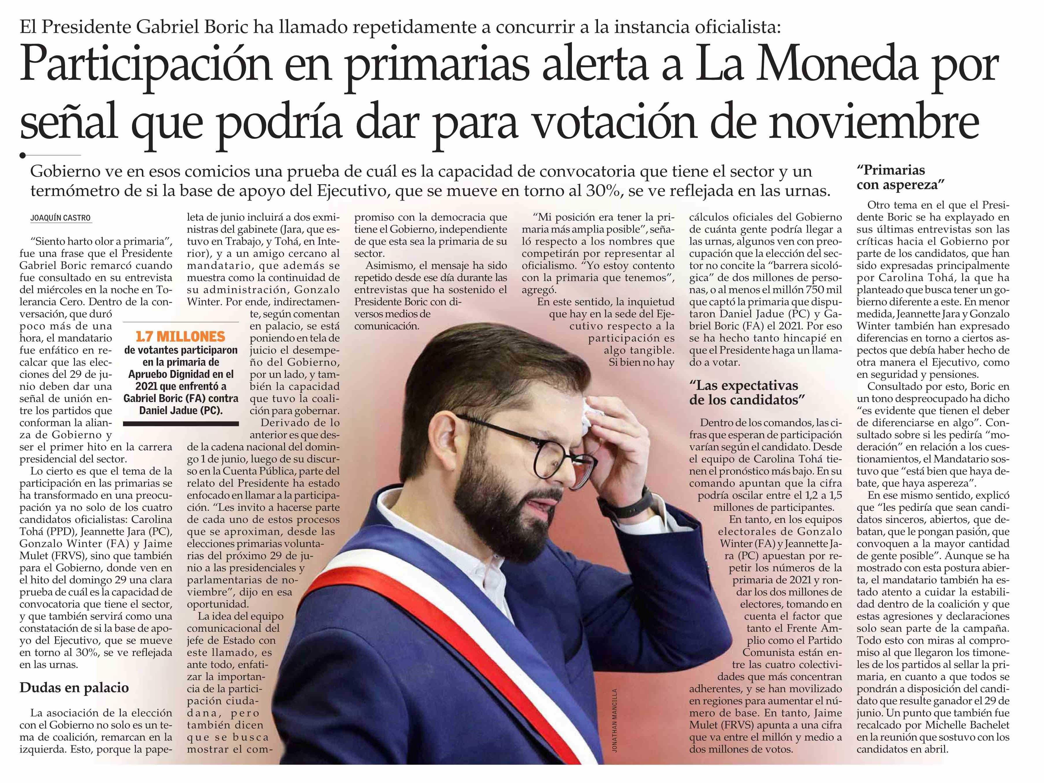 Participación en primarias alerta a La Moneda por señal que podría dar para votación de noviembre