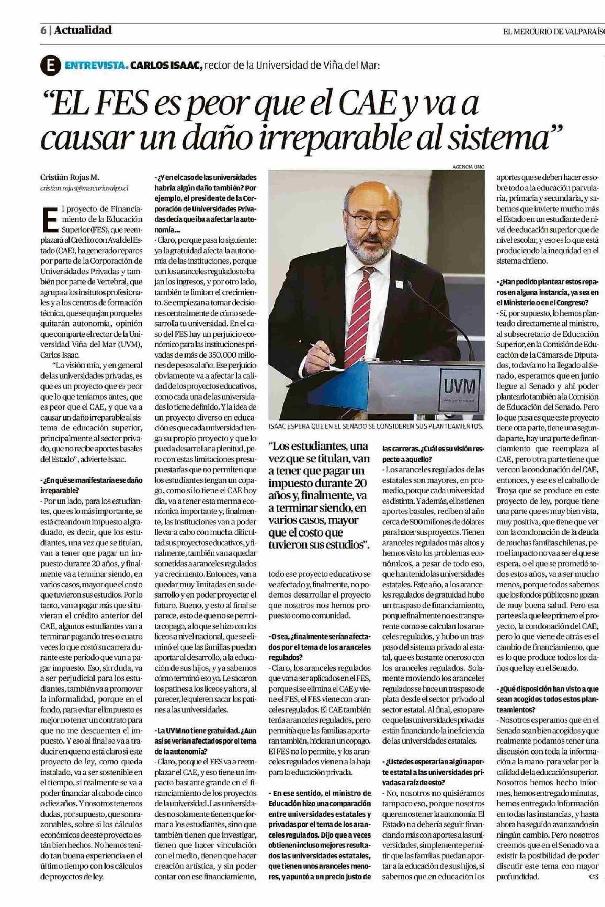 “EL FES es peor que el CAE y va a causar un daño irreparable al sistema”