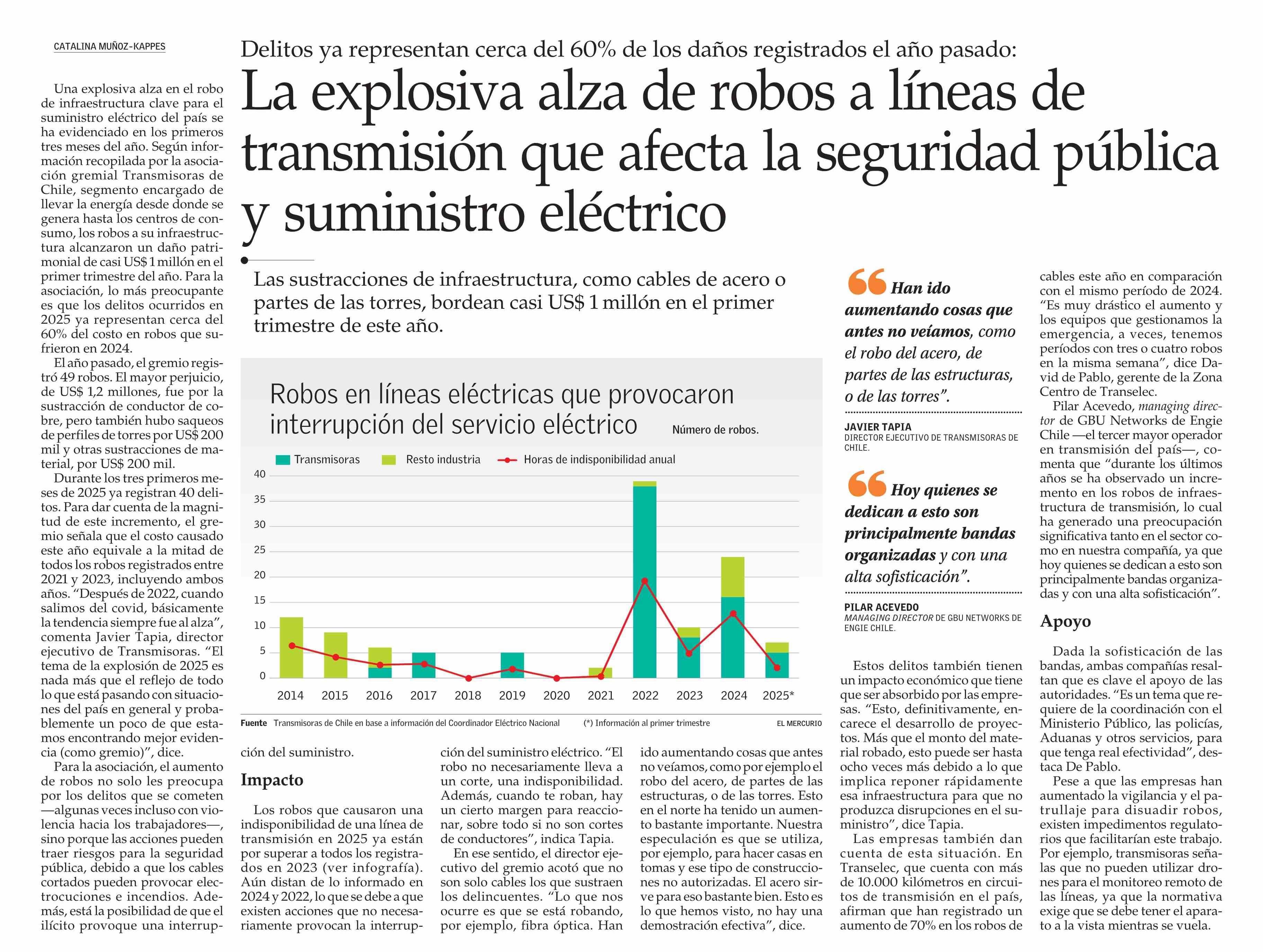 La explosiva alza de robos a líneas de transmisión que afecta la seguridad pública y suministro eléctrico