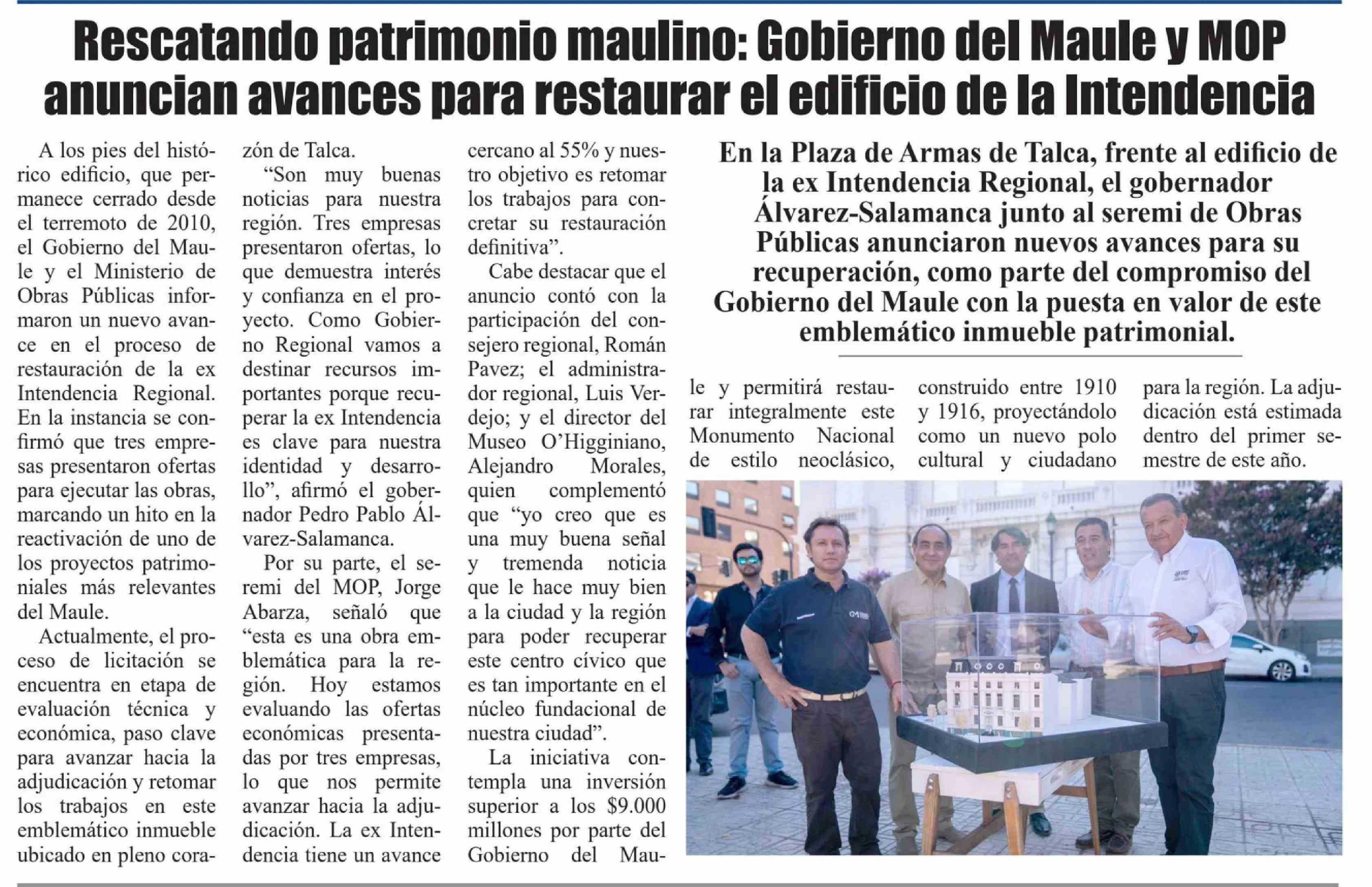 Rescatando patrimonio maulino: Gobierno del Maule y MOP anuncian avances para restaurar el edificio de la Intendencia