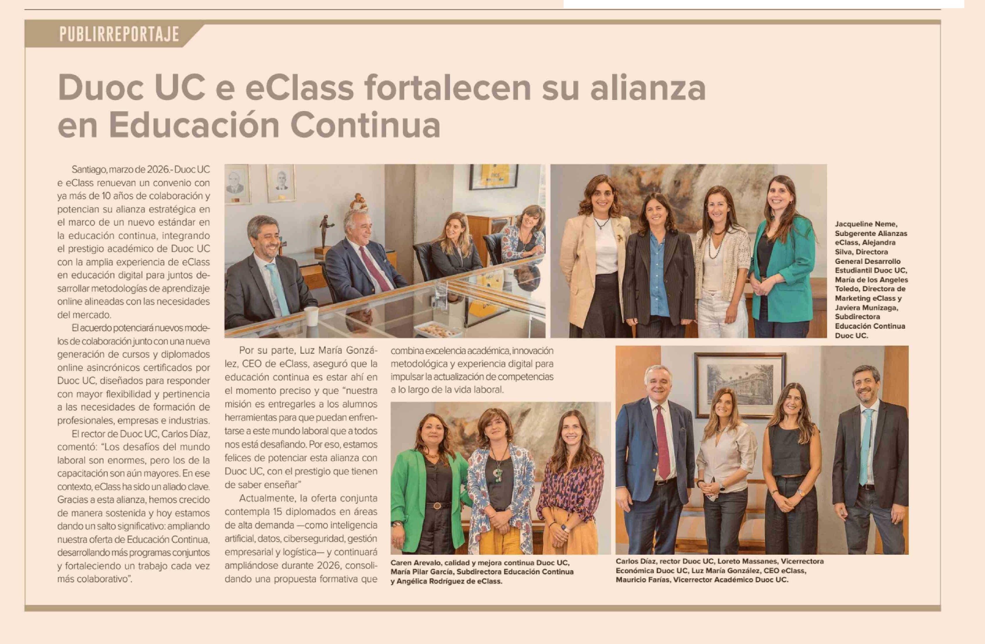 Duoc UC e eClass fortalecen su alianza en Educación Continua