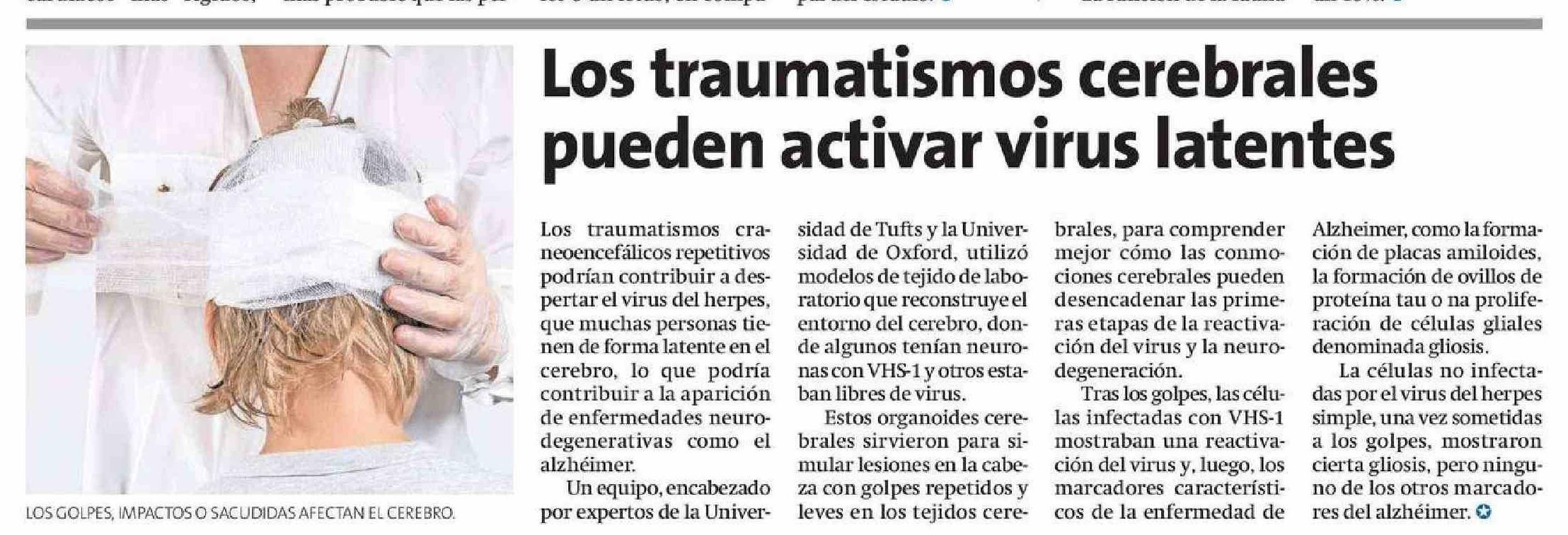 Los traumatismos cerebrales pueden activar virus latentes