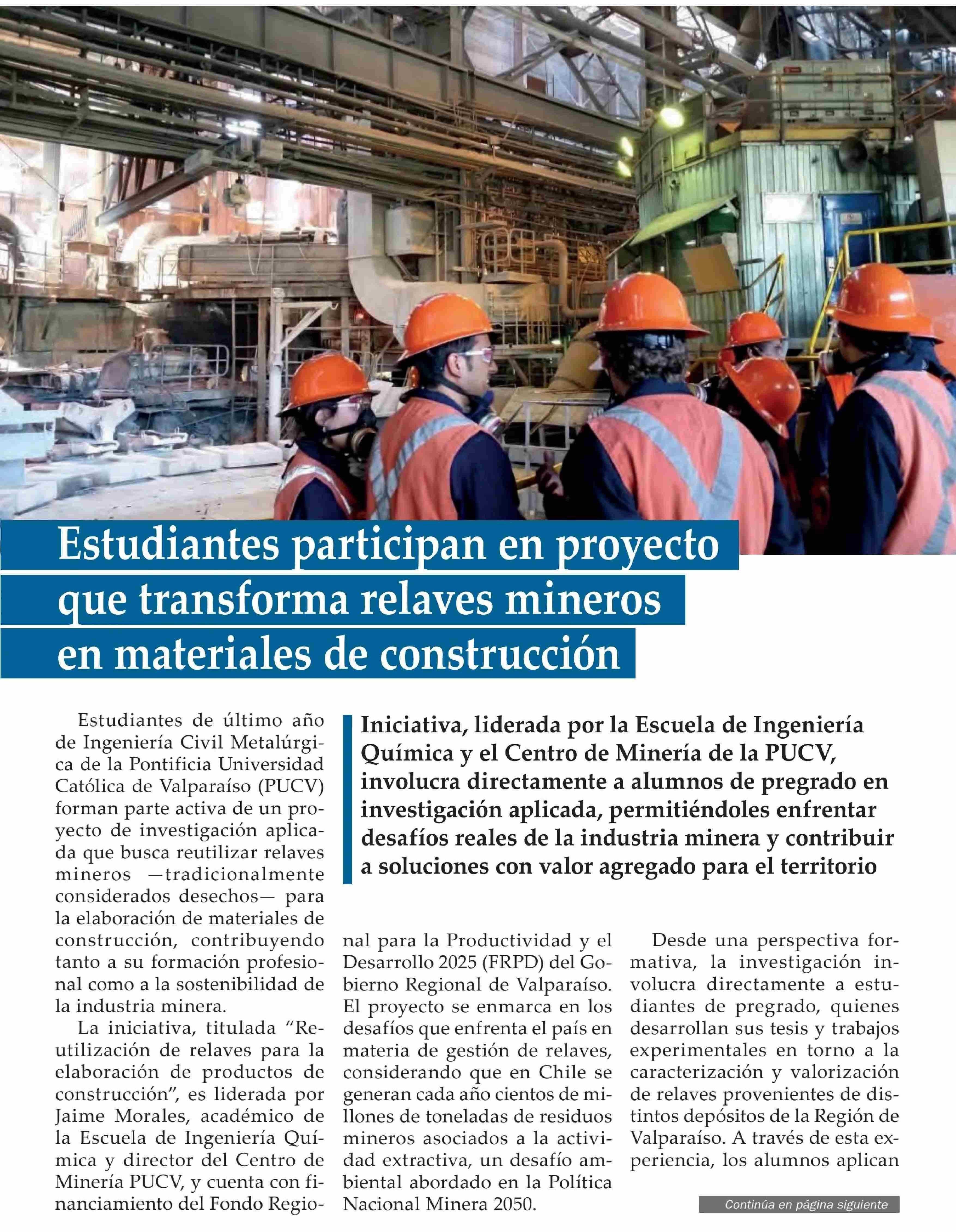 Título: Estudiantes participan en proyecto que transforma relaves mineros en materiales de construcción