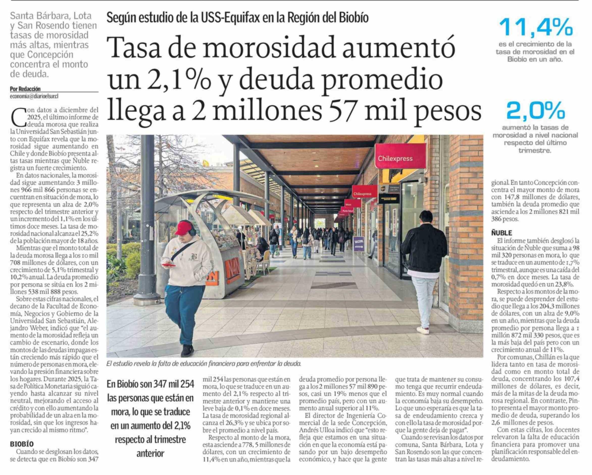 Tasa de morosidad aumentó un 2,1% y deuda promedio llega a 2 millones 57 mil pesos