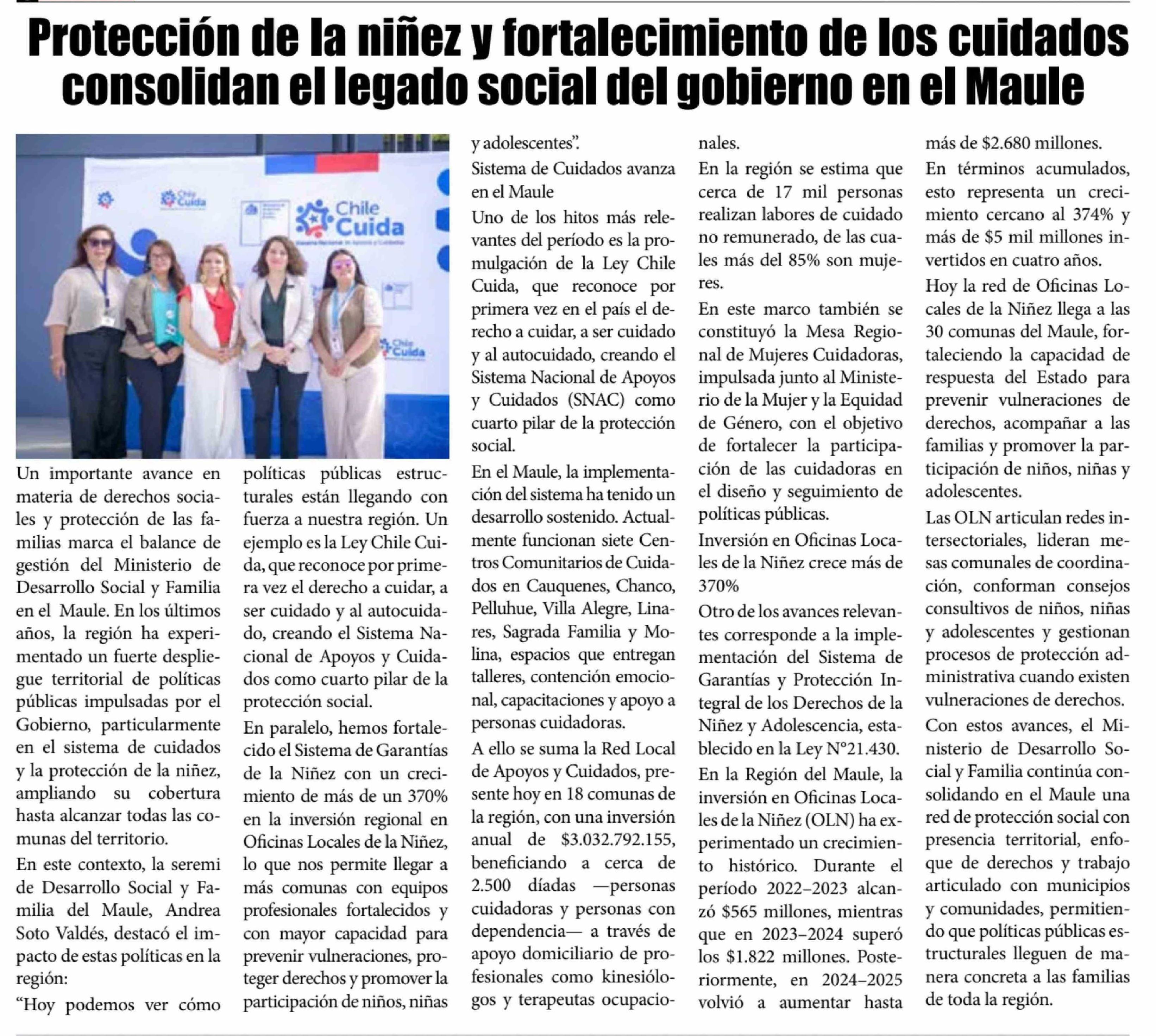 Título: Protección de la niñez y fortalecimiento de los cuidados consolidan el legado social del gobierno en el Maule