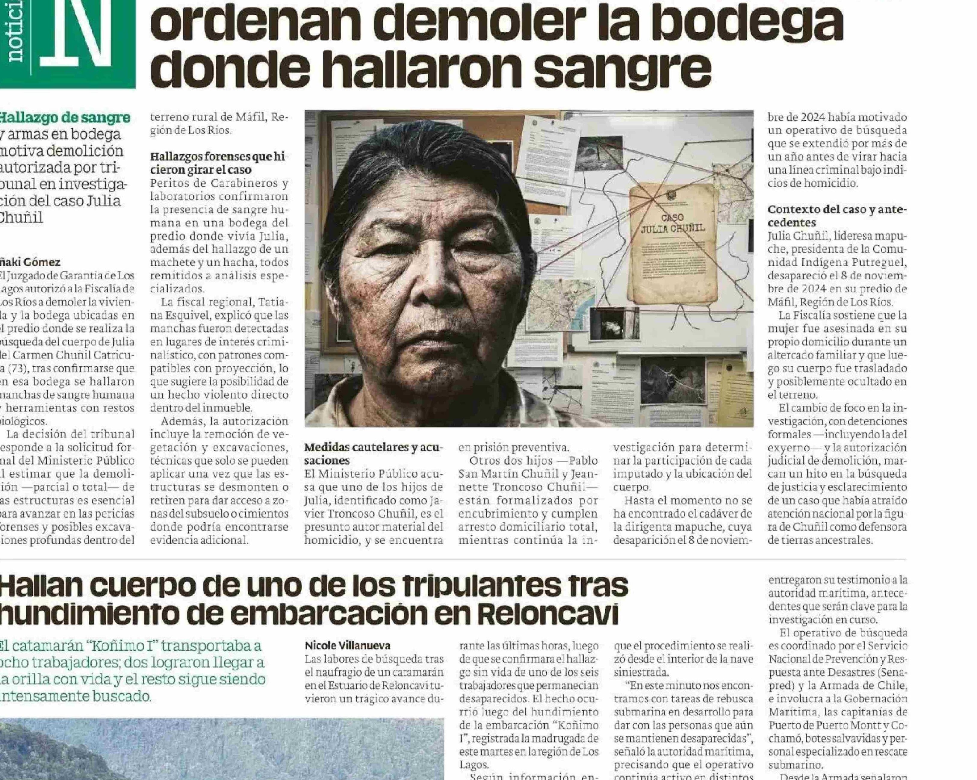 Caso Julia Chuñil da giro brutal: ordenan demoler la bodega donde hallaron sangre
