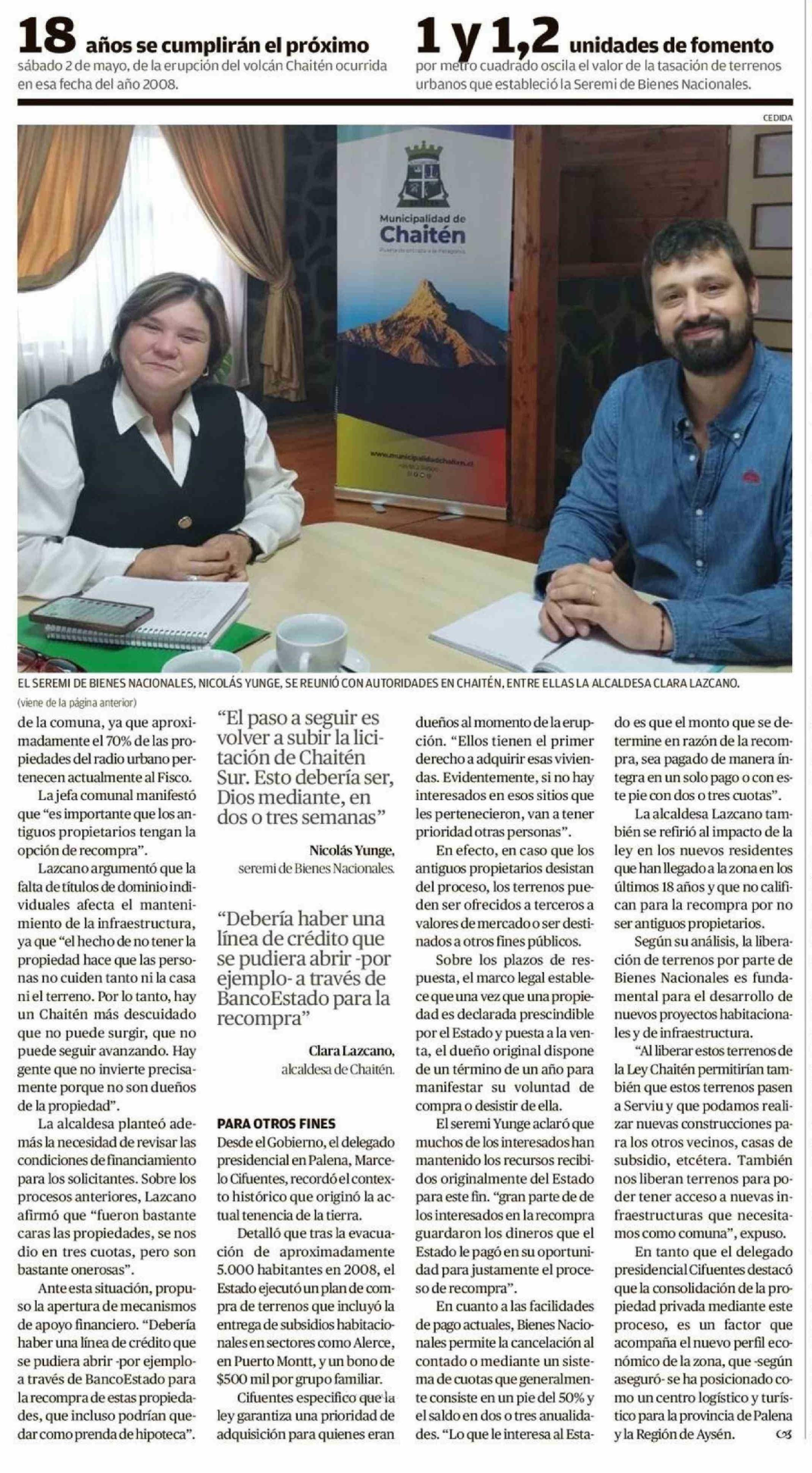 Bienes Nacionales impulsa proceso de recompra de terrenos en Chaitén