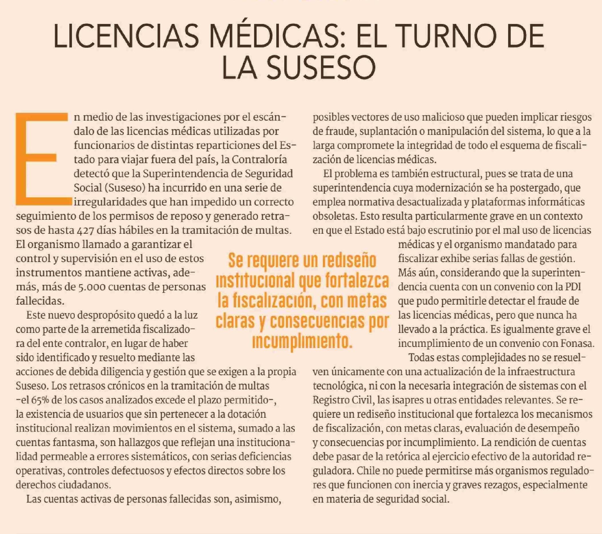 EDITORIAL: LICENCIAS MÉDICAS: EL TURNO DE LA SUSESO