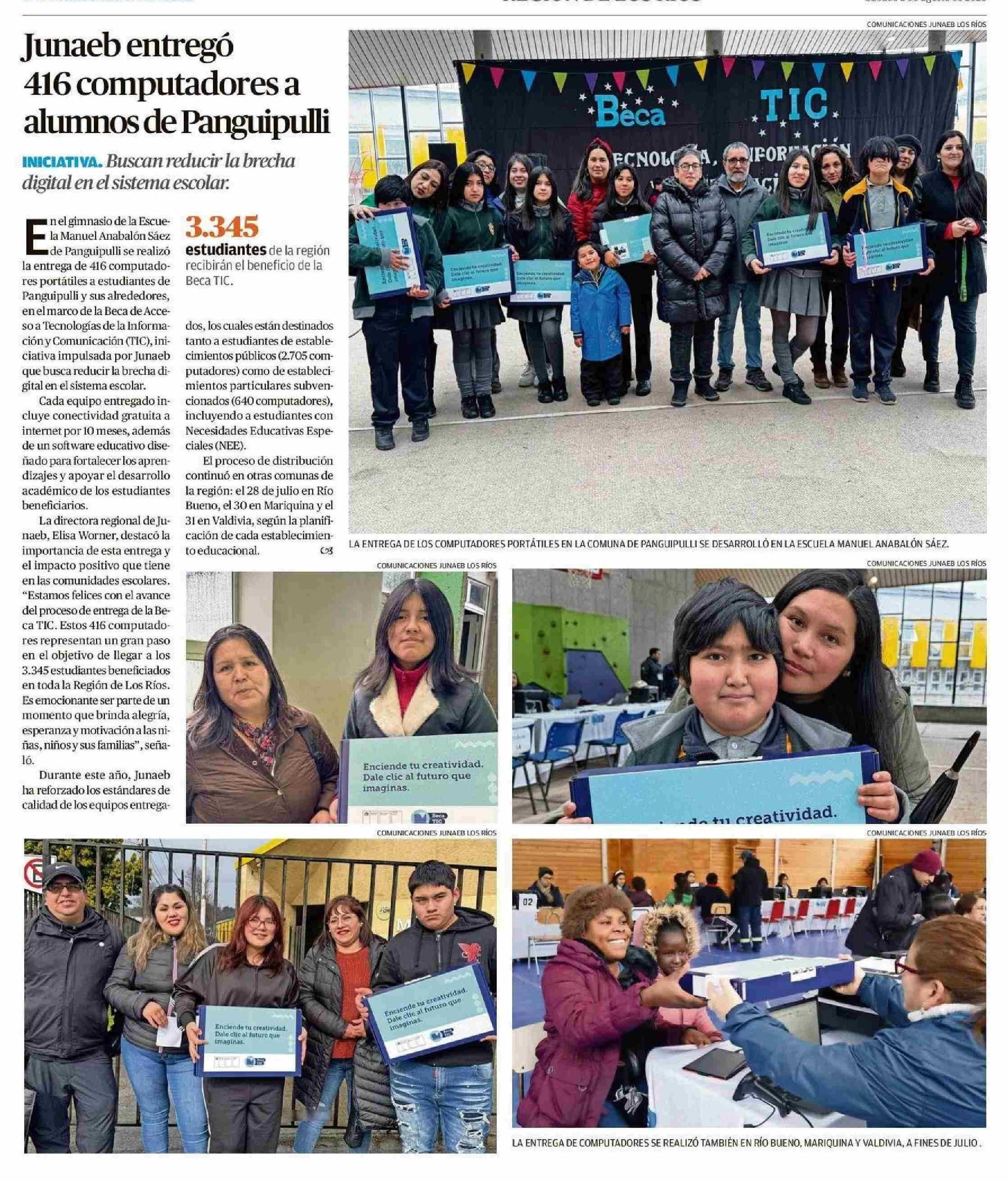 Junaeb entregó 416 computadores a alumnos de Panguipulli