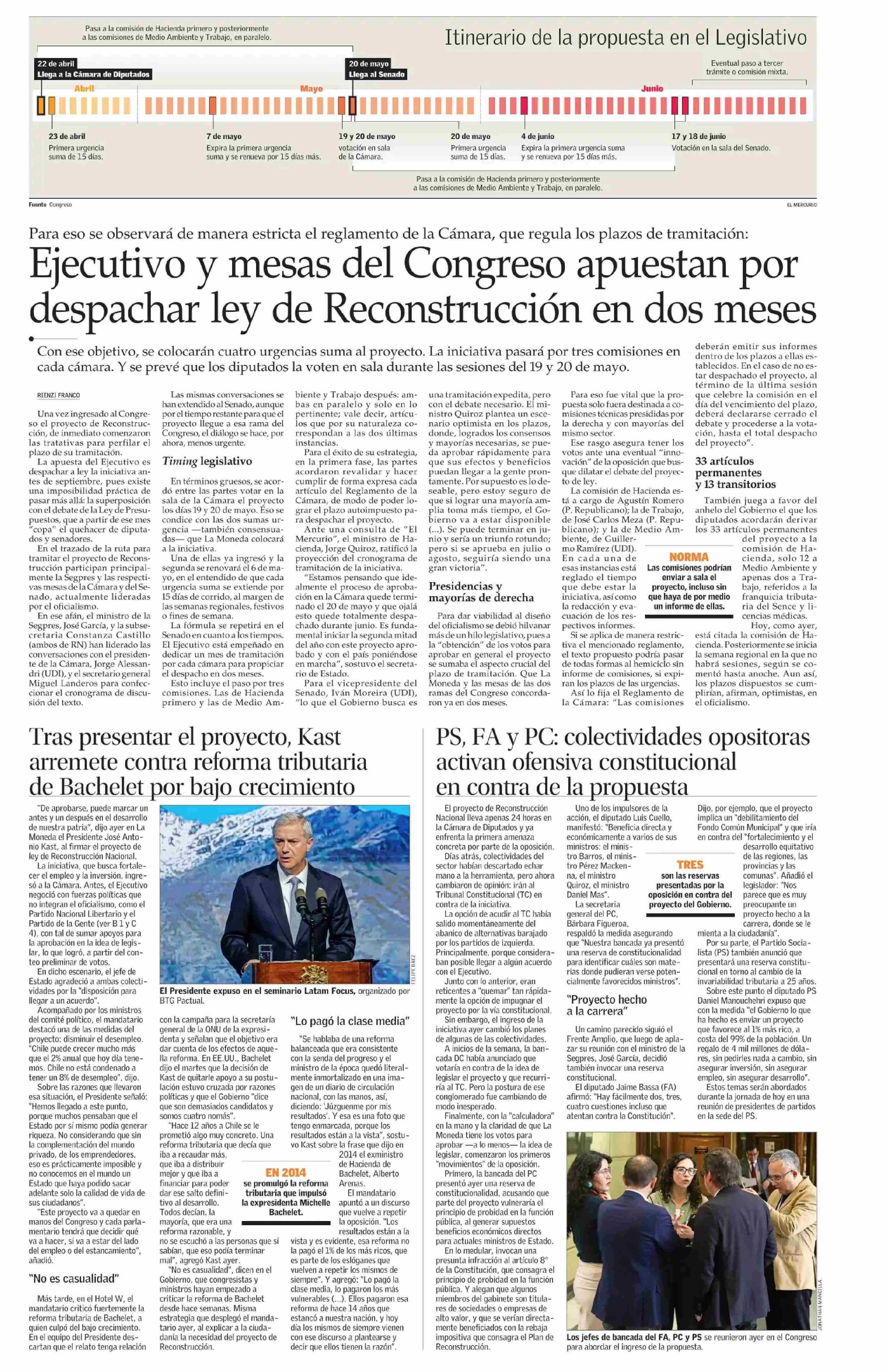 Ejecutivo y mesas del Congreso apuestan por despachar ley de Reconstrucción en dos meses