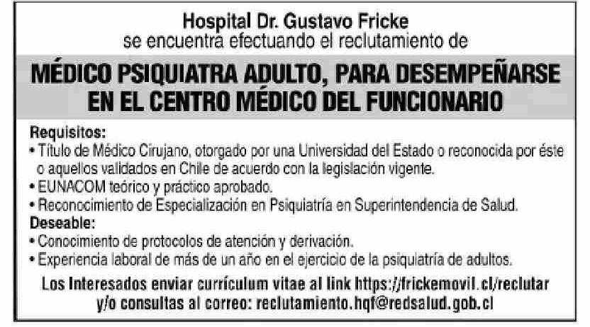 AVISO LICITACIONES: Hospital Dr. Gustavo Fricke se encuentra efectuando el reclutamiento de