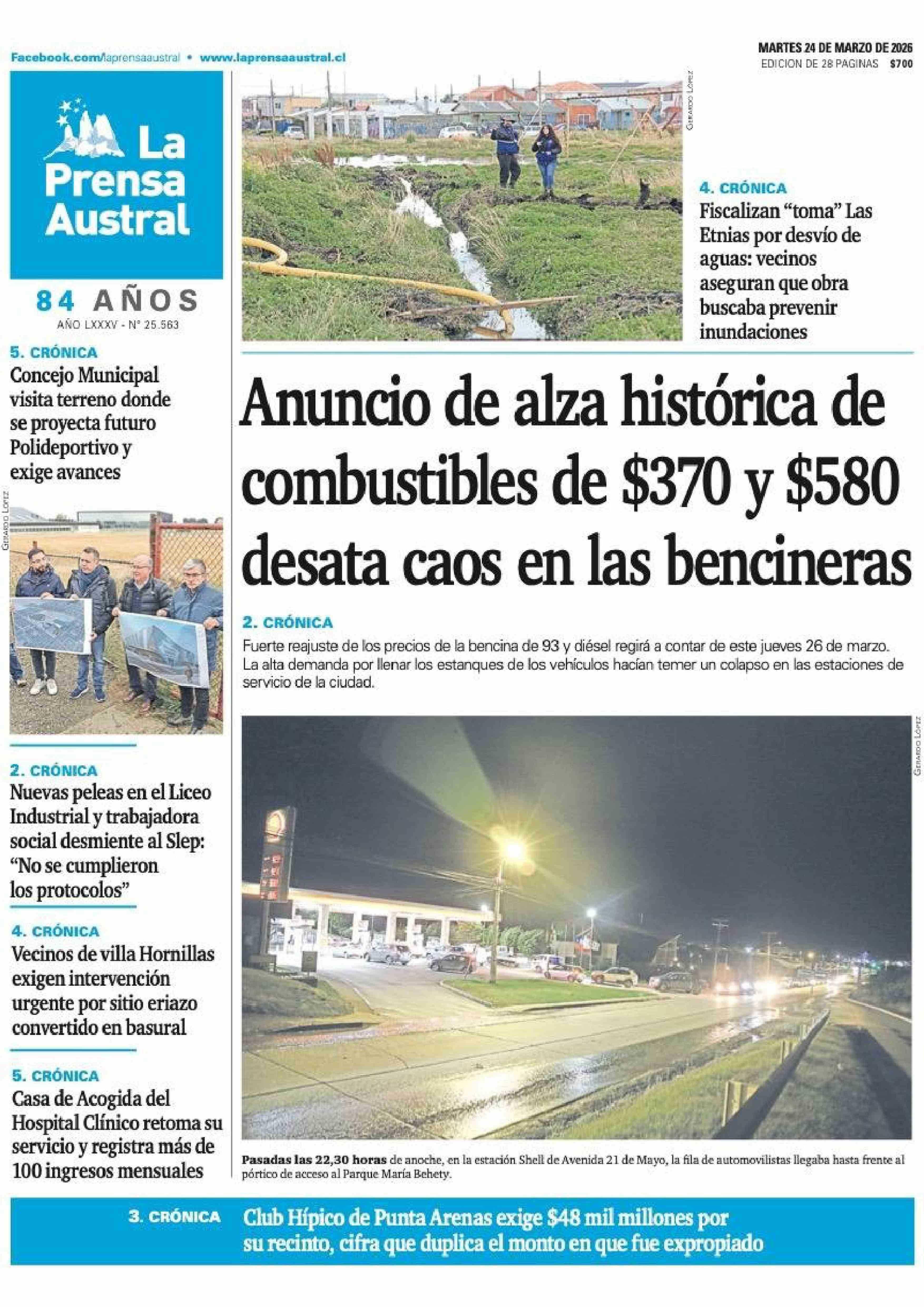PORTADA LA PRENSA AUSTRAL CHILE