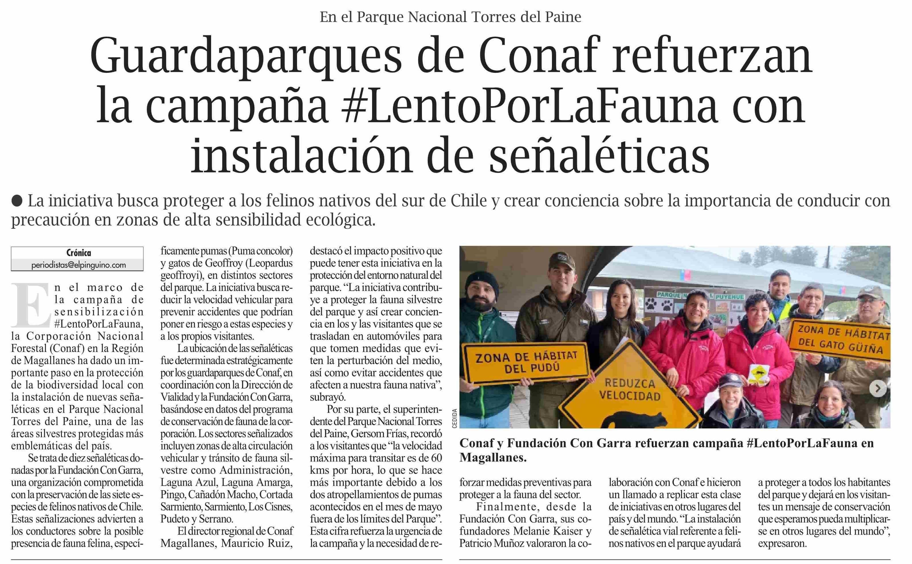 Guardaparques de Conaf refuerzan la campaña #LentoPorLaFauna con instalación de señaléticas
