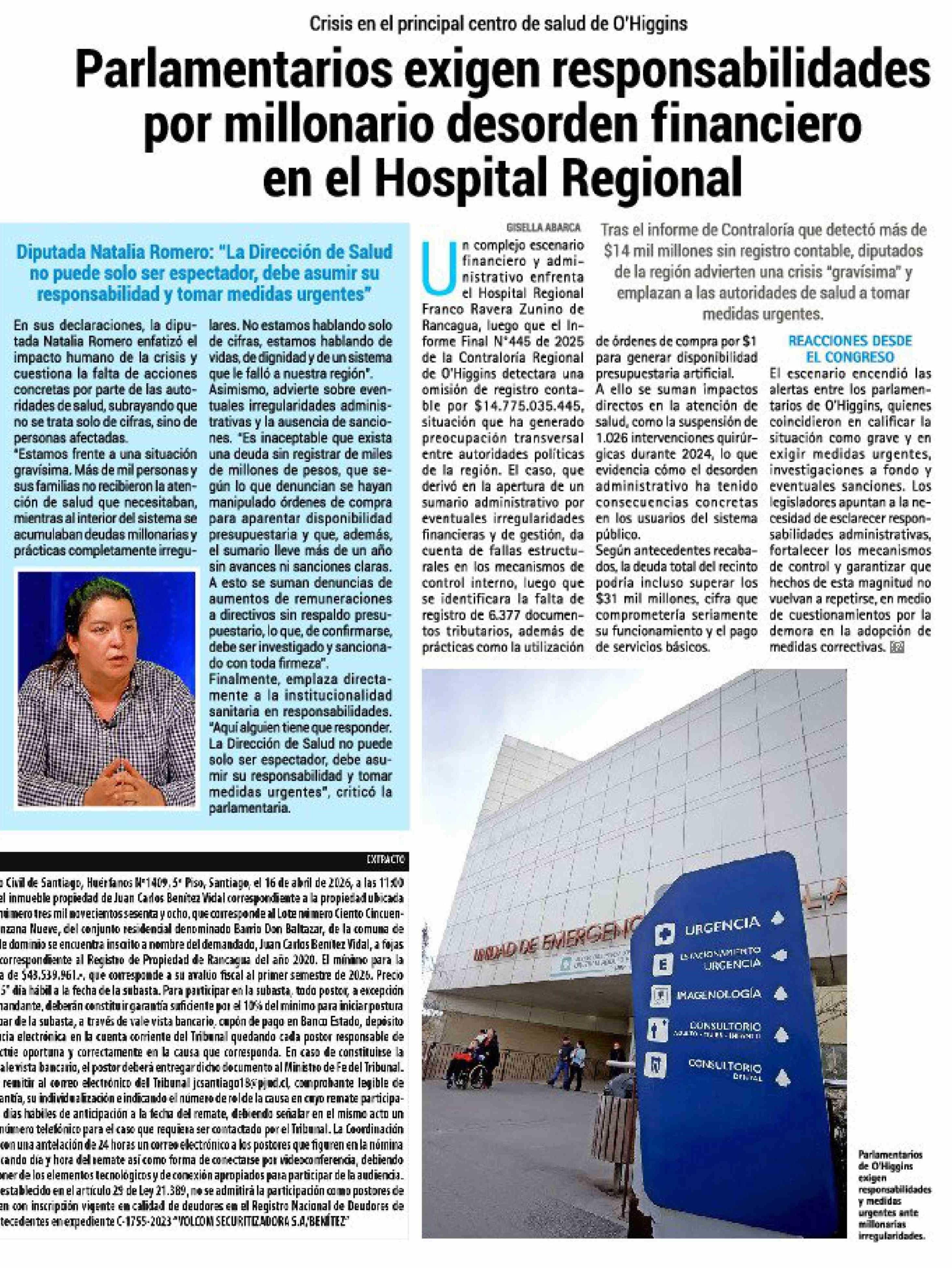 Parlamentarios exigen responsabilidades por millonario desorden financiero en el Hospital Regional