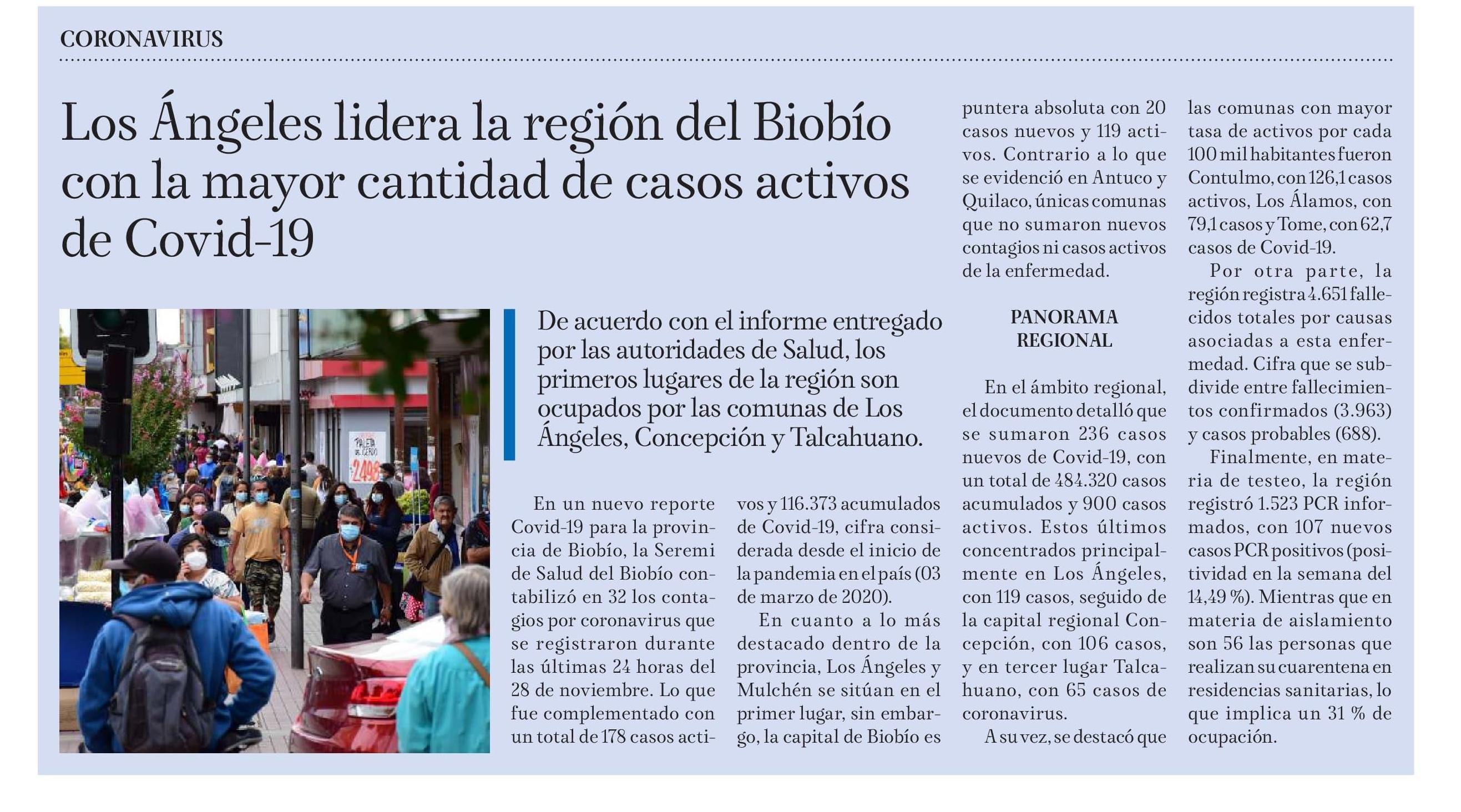 Los Ángeles lidera la región del Biobío con la mayor cantidad de casos activos de Covid-19