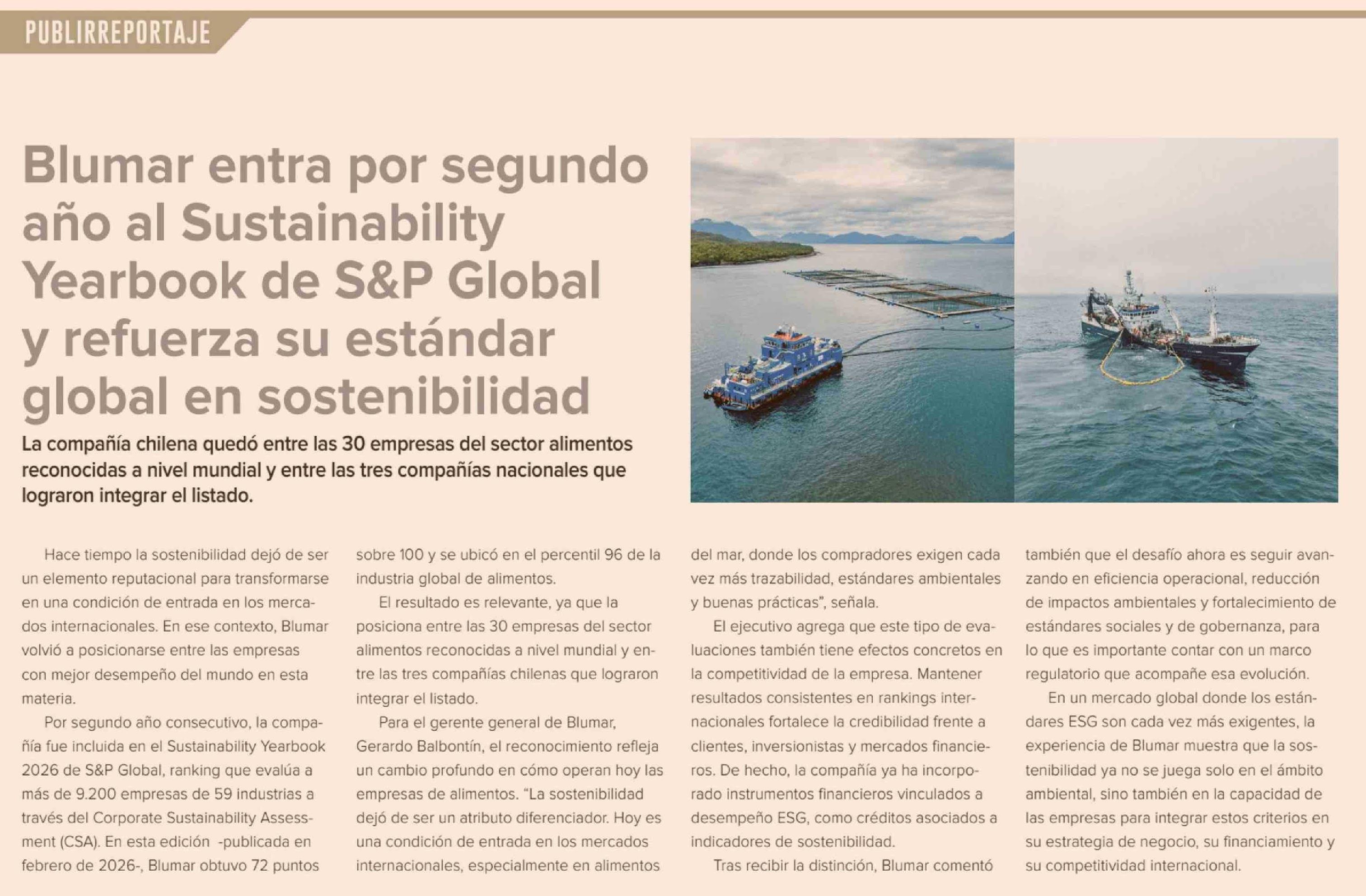 Blumar entra por segundo año al Sustainability Yearbook de S&P Global y refuerza su estándar global en sostenibilidad