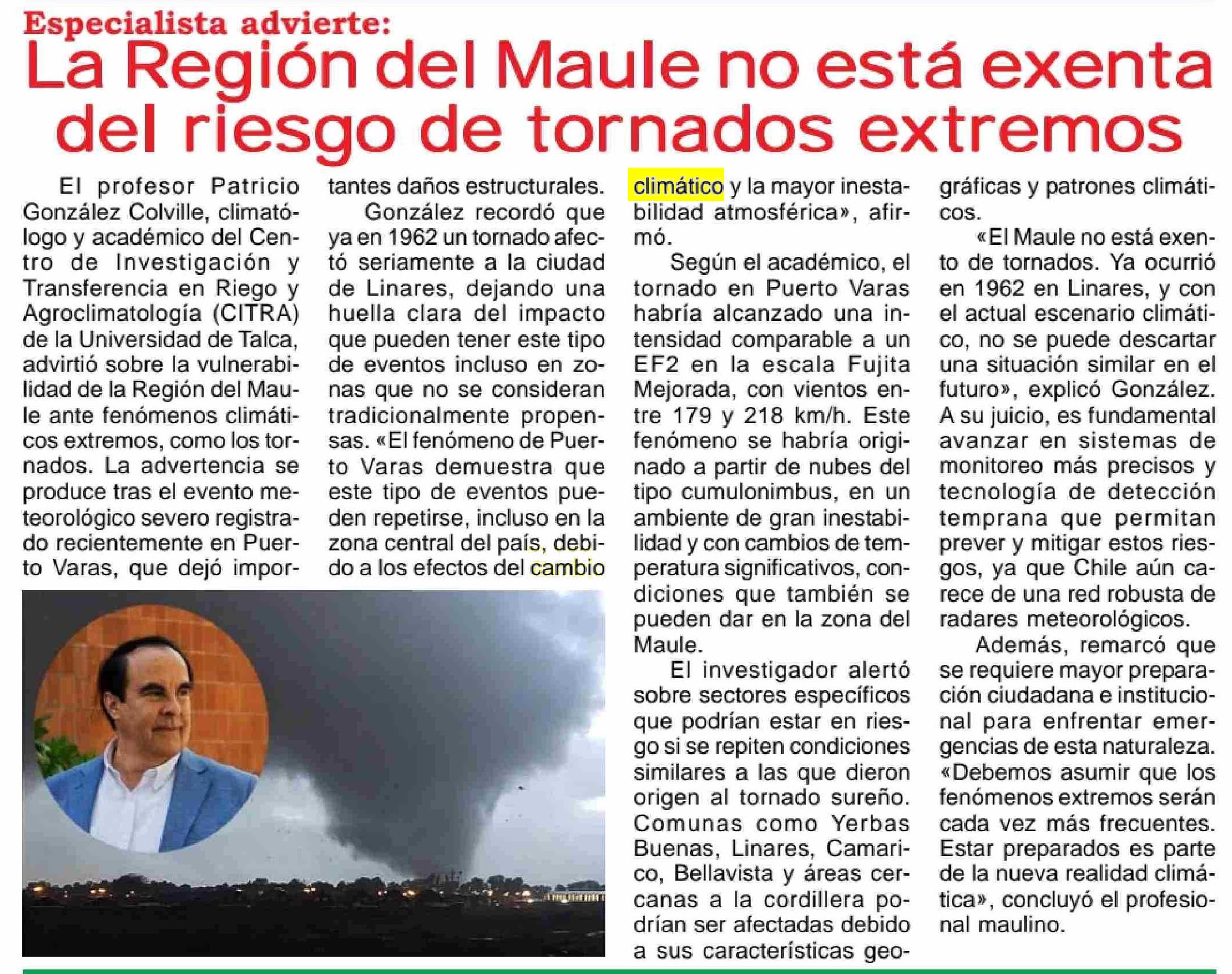 La Región del Maule no esta exenta del riesgo de tornados extremos