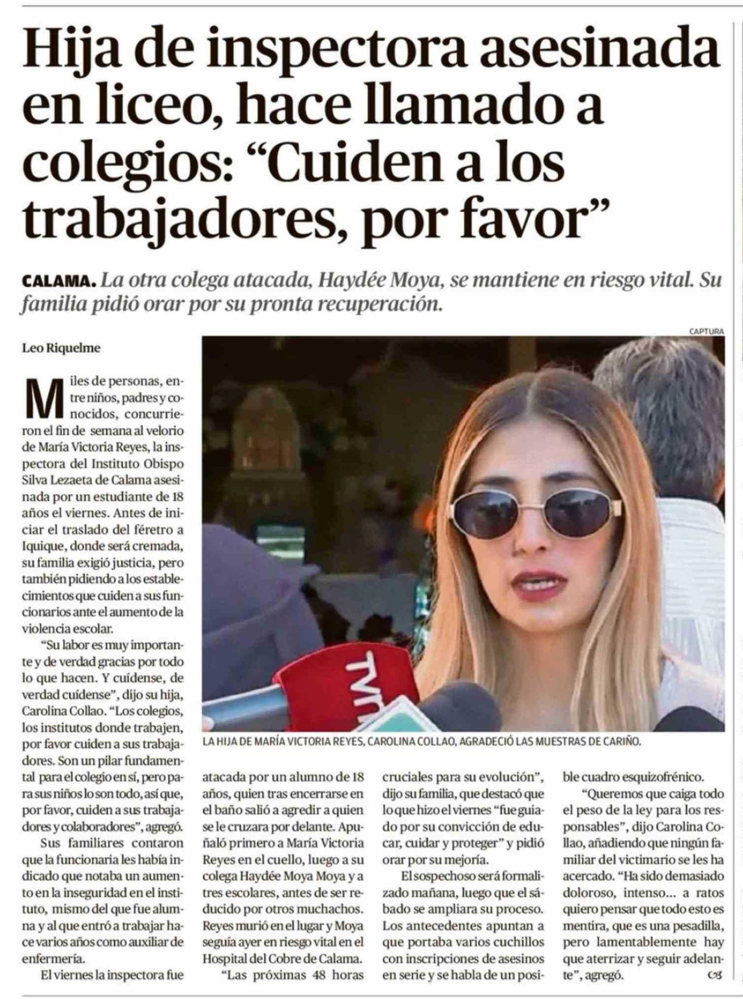 Hija de inspectora asesinada en liceo, hace llamado a colegios: "Cuiden a los trabajadores, por favor"