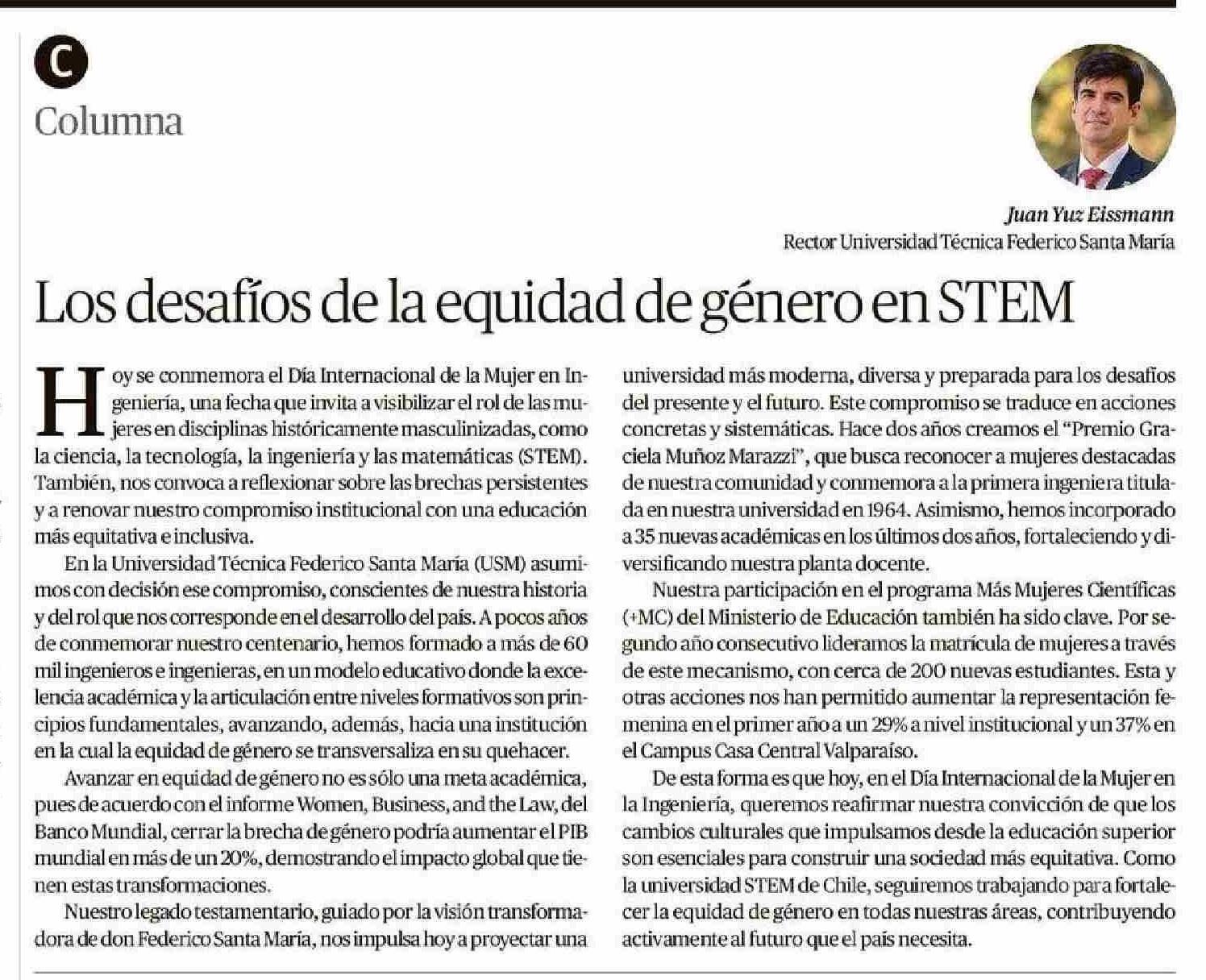 Columnas de Opinión: Los desafíos de la equidad de género en STEM