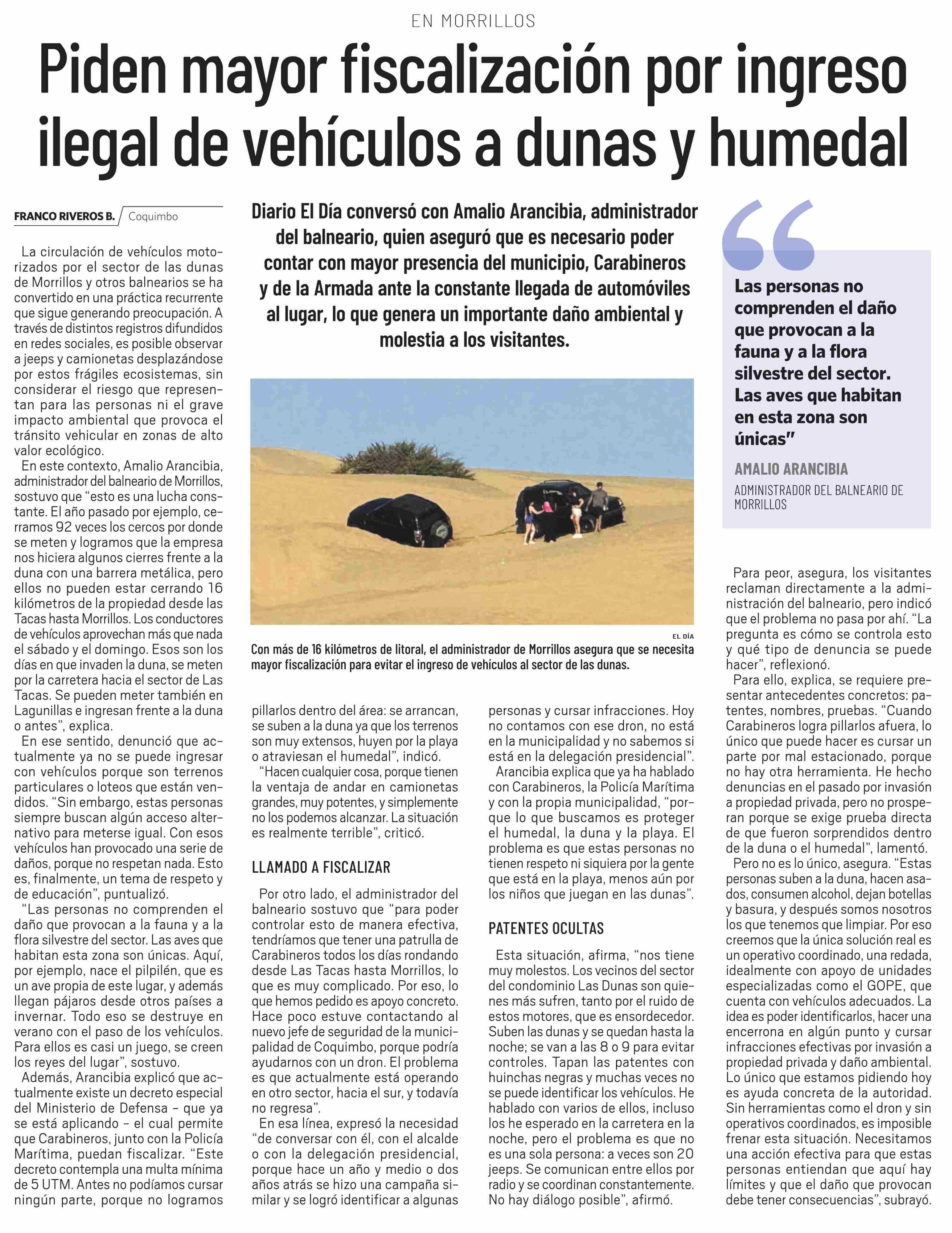 Piden mayor fiscalización por ingreso ilegal de vehículos a dunas y humedal