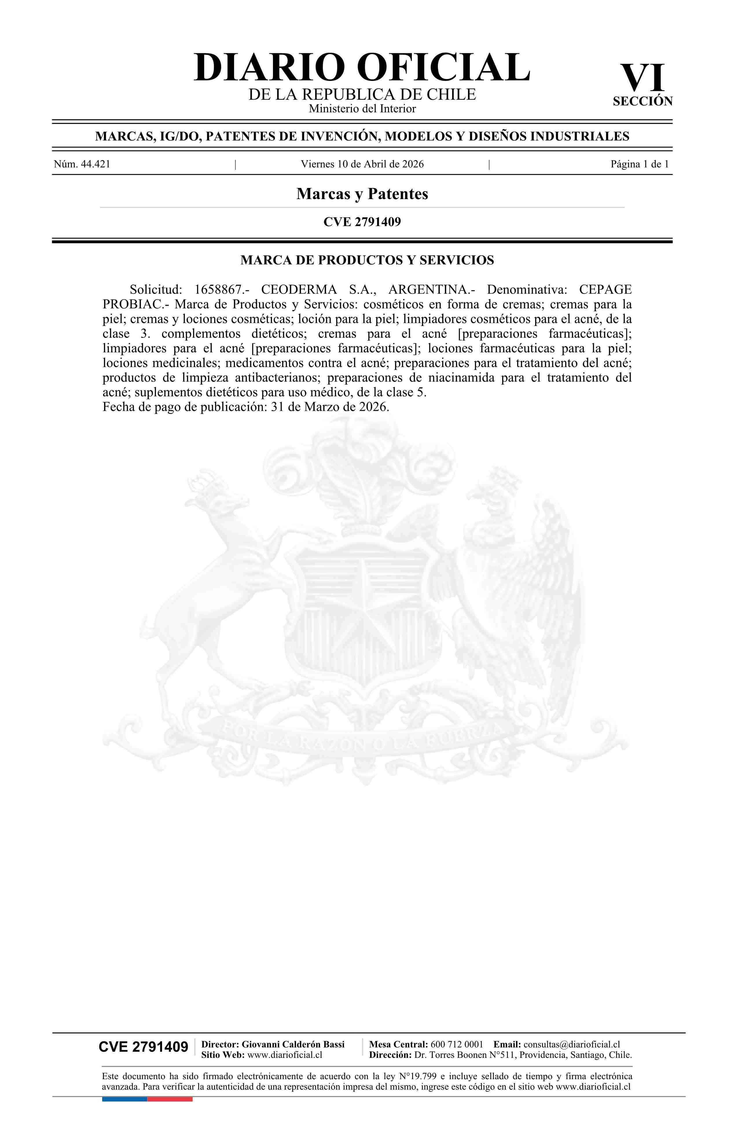 Diario Oficial Edición Electrónica (Diario Oficial de Chile - 6 Marcas Y Patentes)