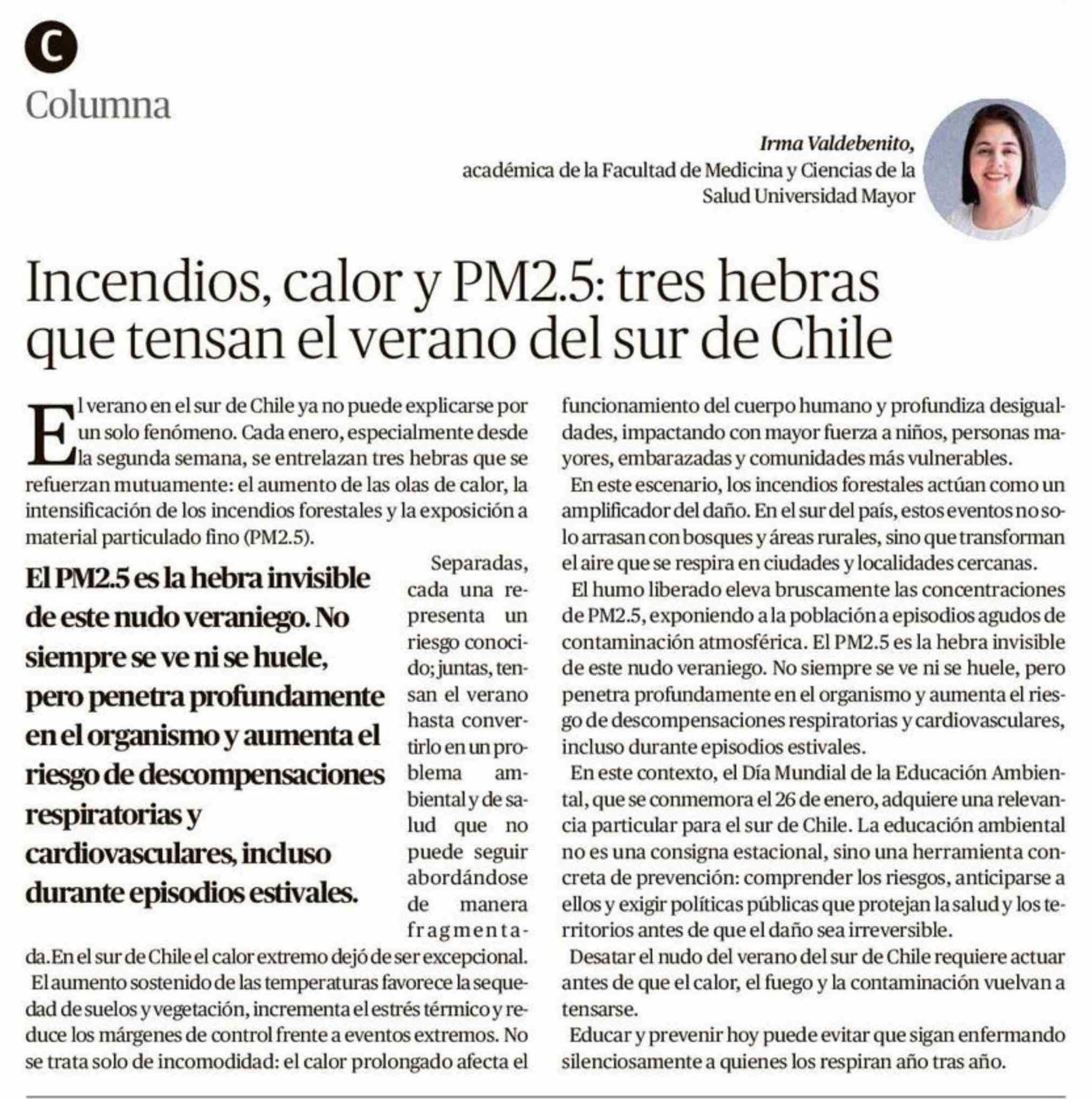Columnas de Opinión: Incendios, calor y PM2.5: tres hebras que tensan el verano del sur de Chile