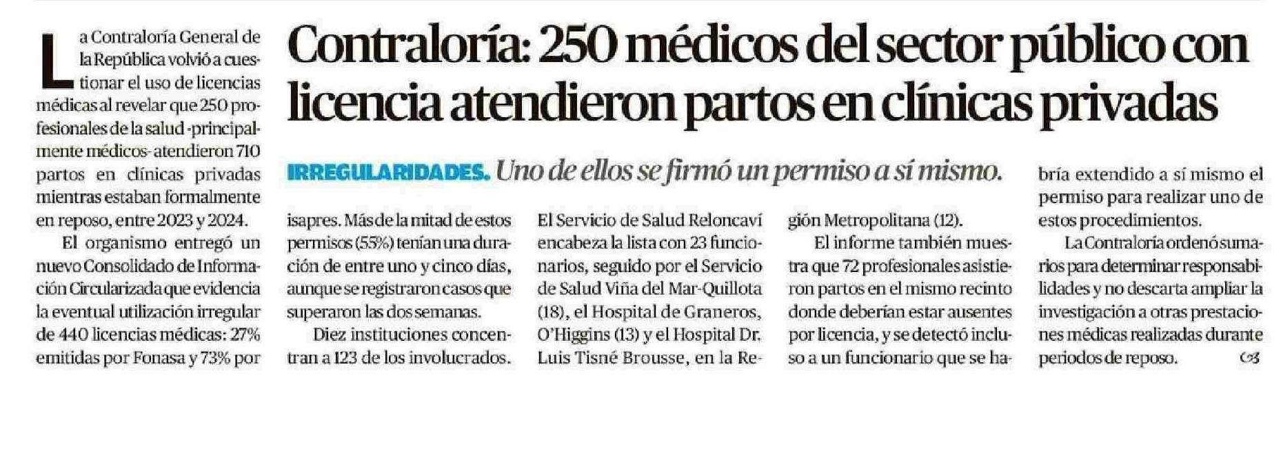 Contraloría: 250 médicos del sector público con licencia atendieron partos en clínicas privadas
