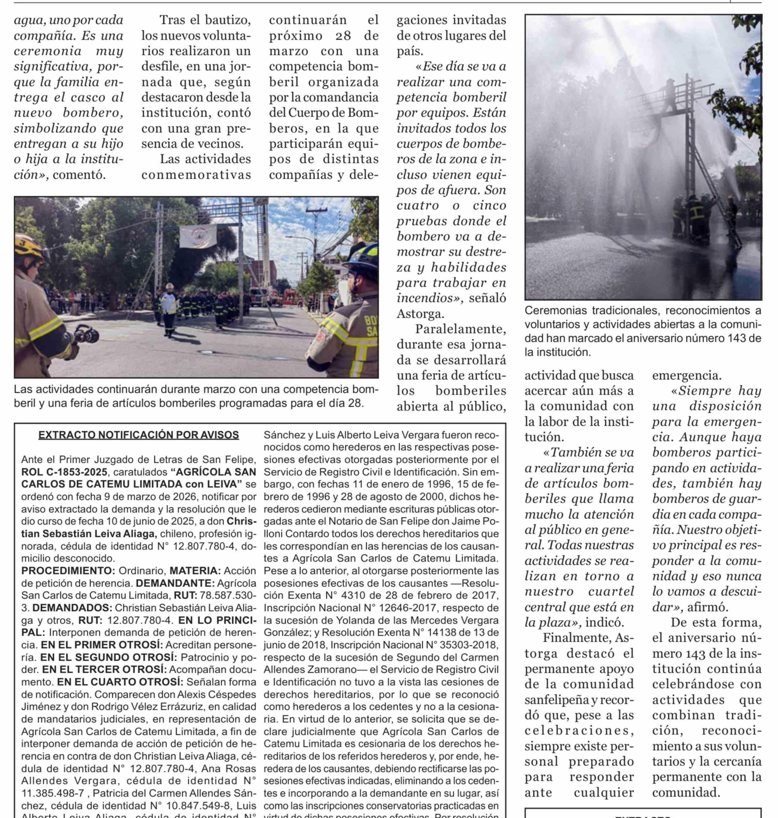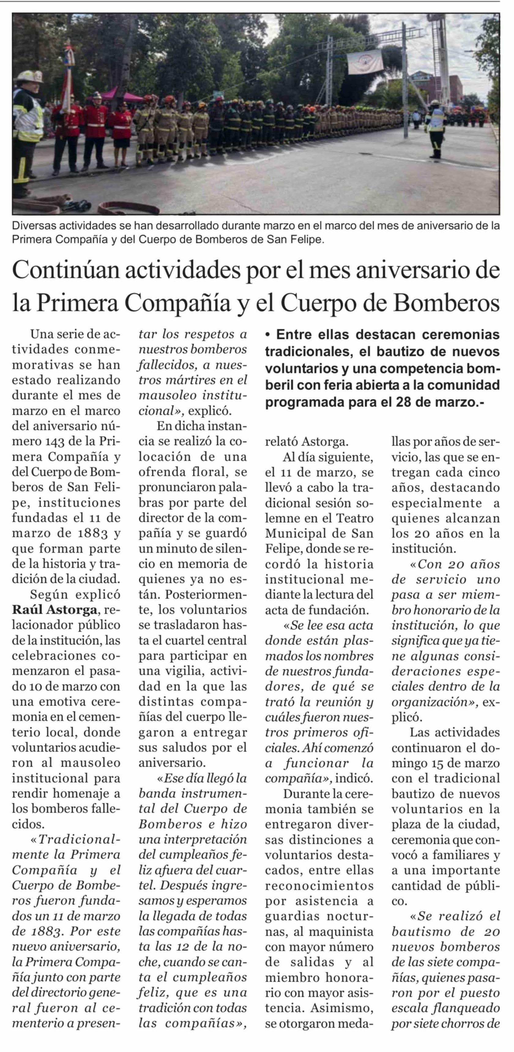 Continúan actividades por el mes aniversario de la Primera Compañía y el Cuerpo de Bomberos