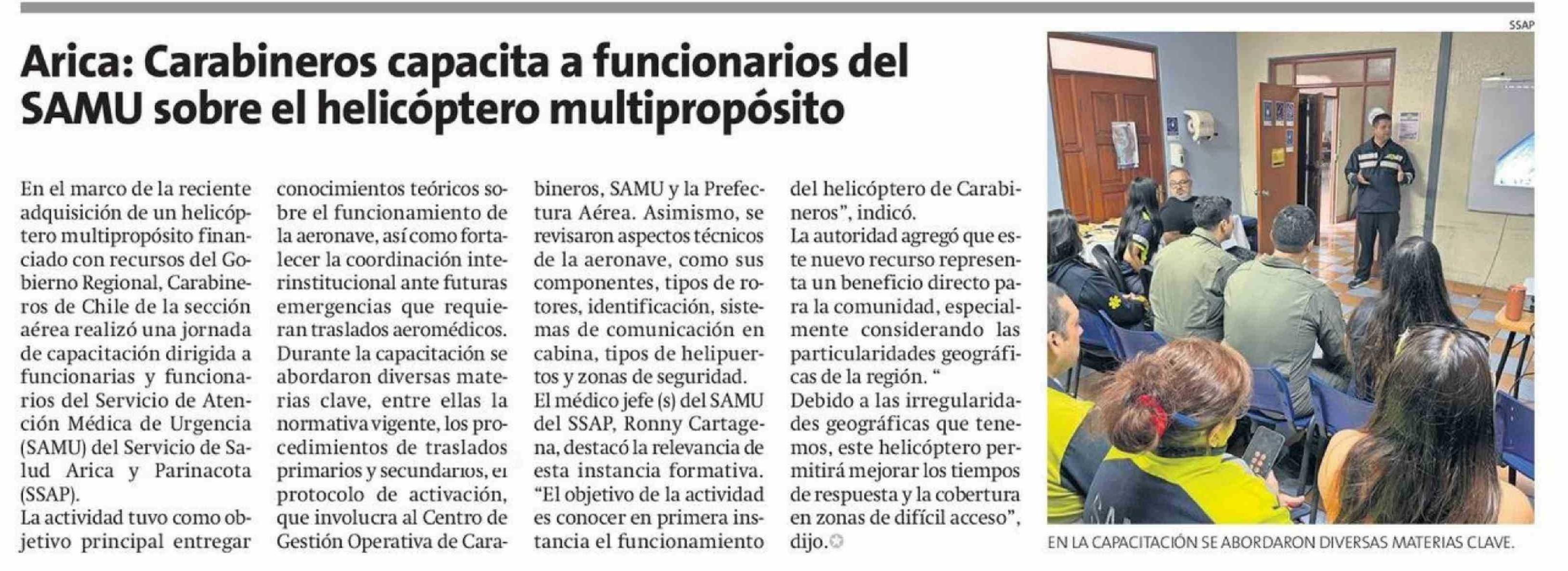 Arica: Carabineros capacita a funcionarios del SAMU sobre el helicóptero multipropósito