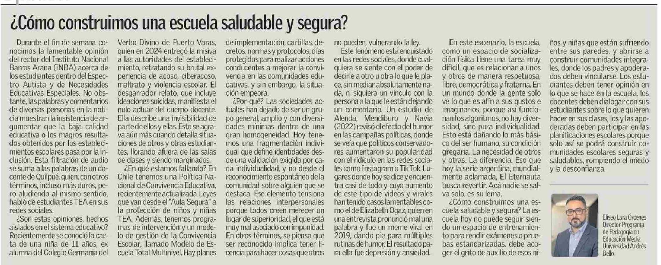Columnas de Opinión: ¿Cómo construimos una escuela saludable y segura?