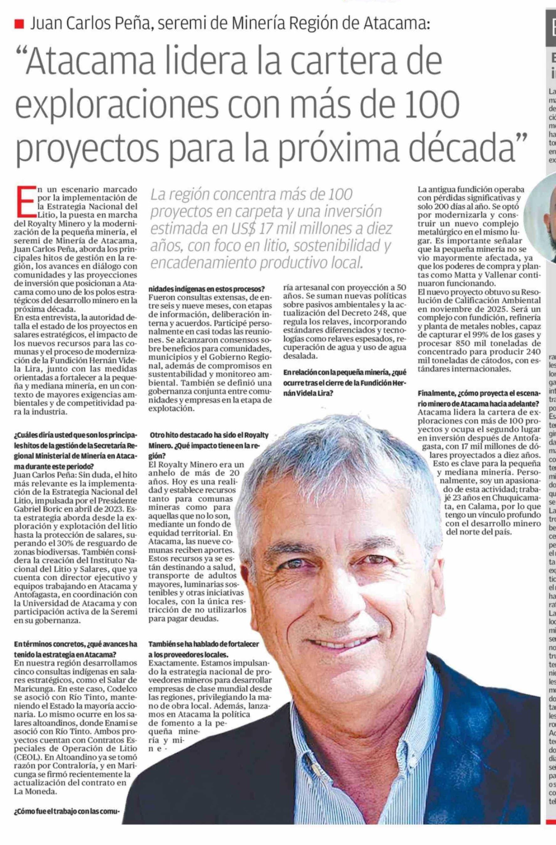 "Atacama lidera la cartera de exploraciones con más de 100 proyectos para la próxima década"