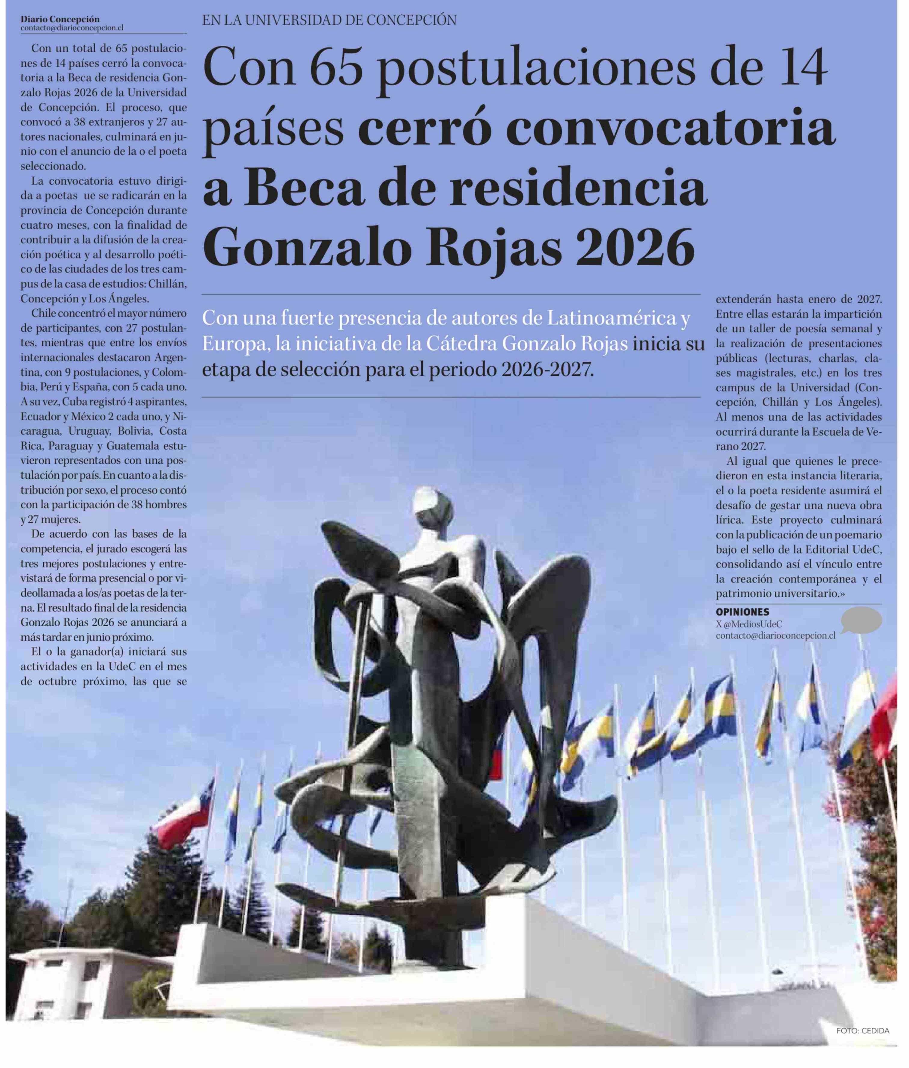 Con 65 postulaciones de 14 países cerró convocatoria a Beca de residencia Gonzalo Rojas 2026