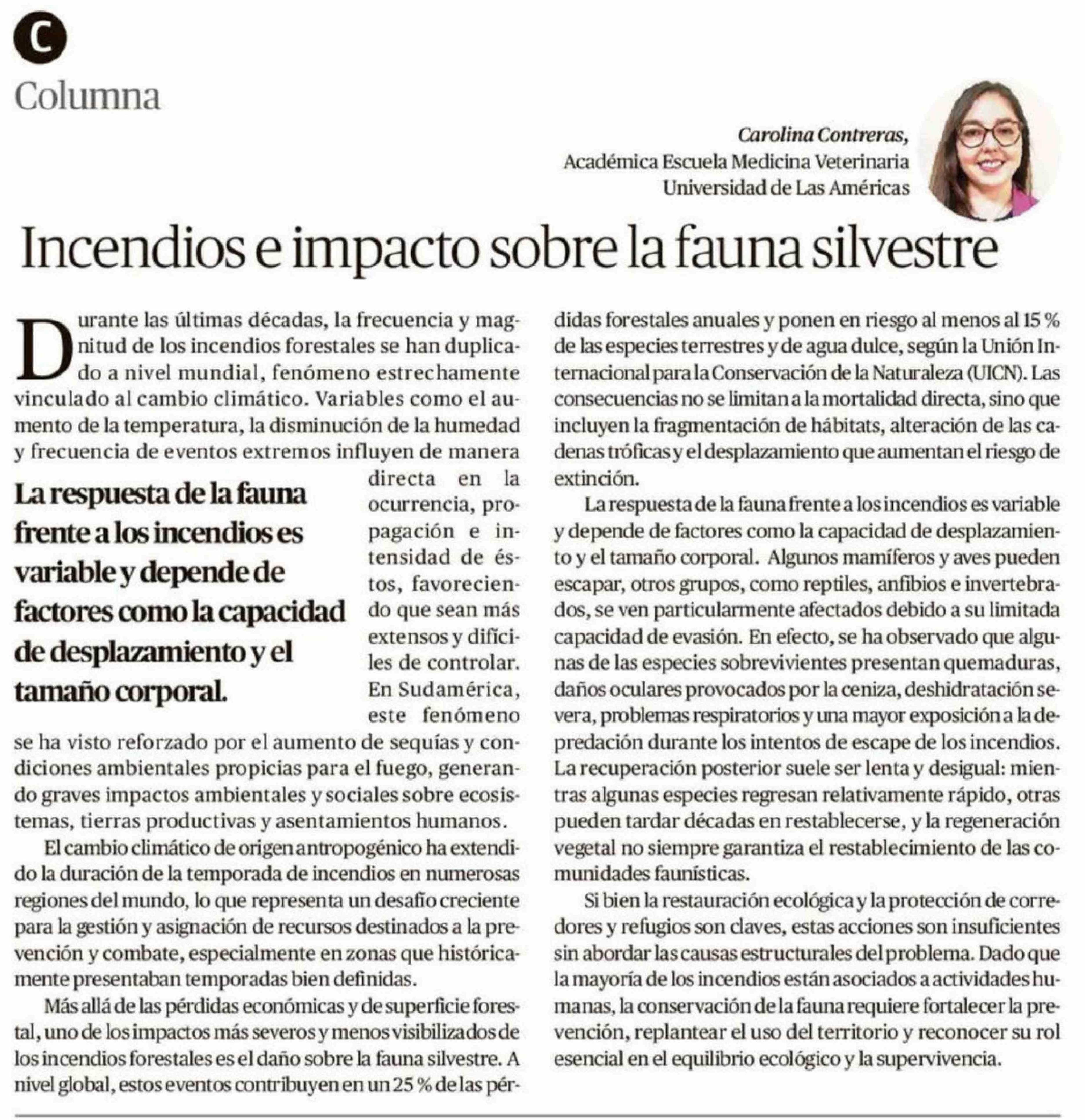 Columnas de Opinión: Incendios e impacto sobre la fauna silvestre