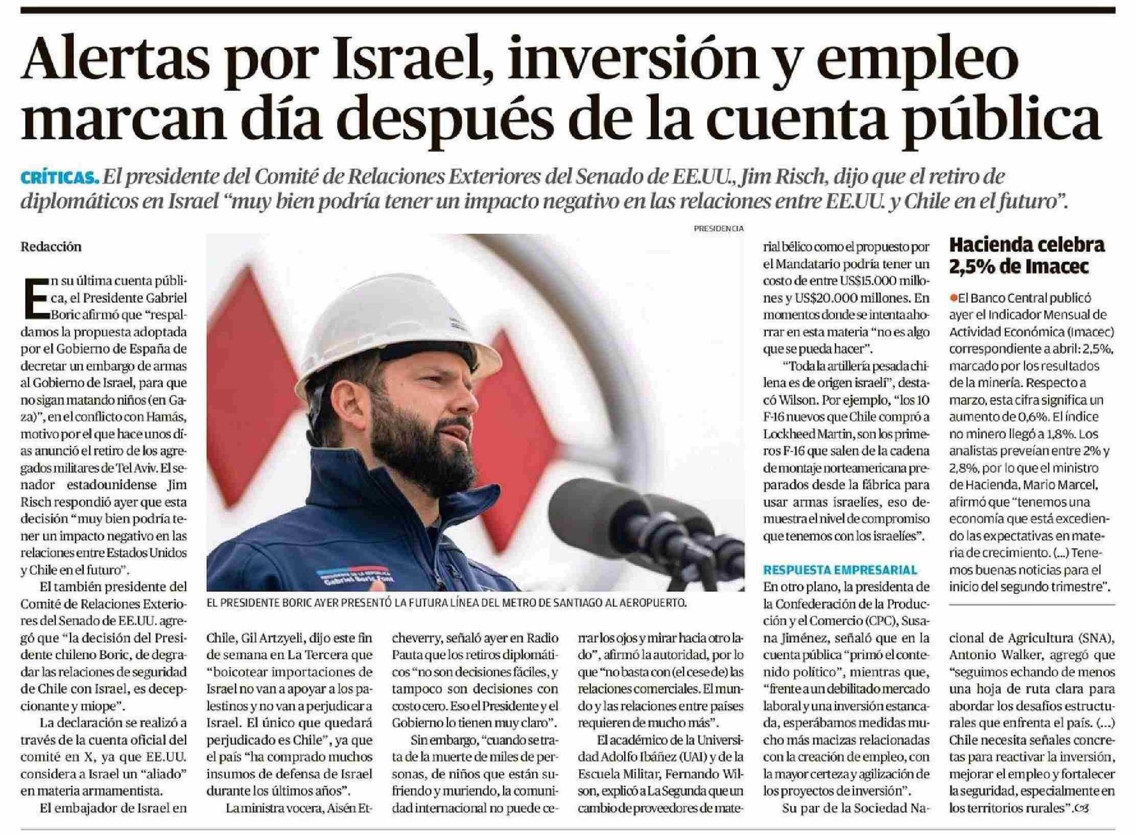 Alertas por Israel, inversión y empleo marcan día después de la cuenta pública