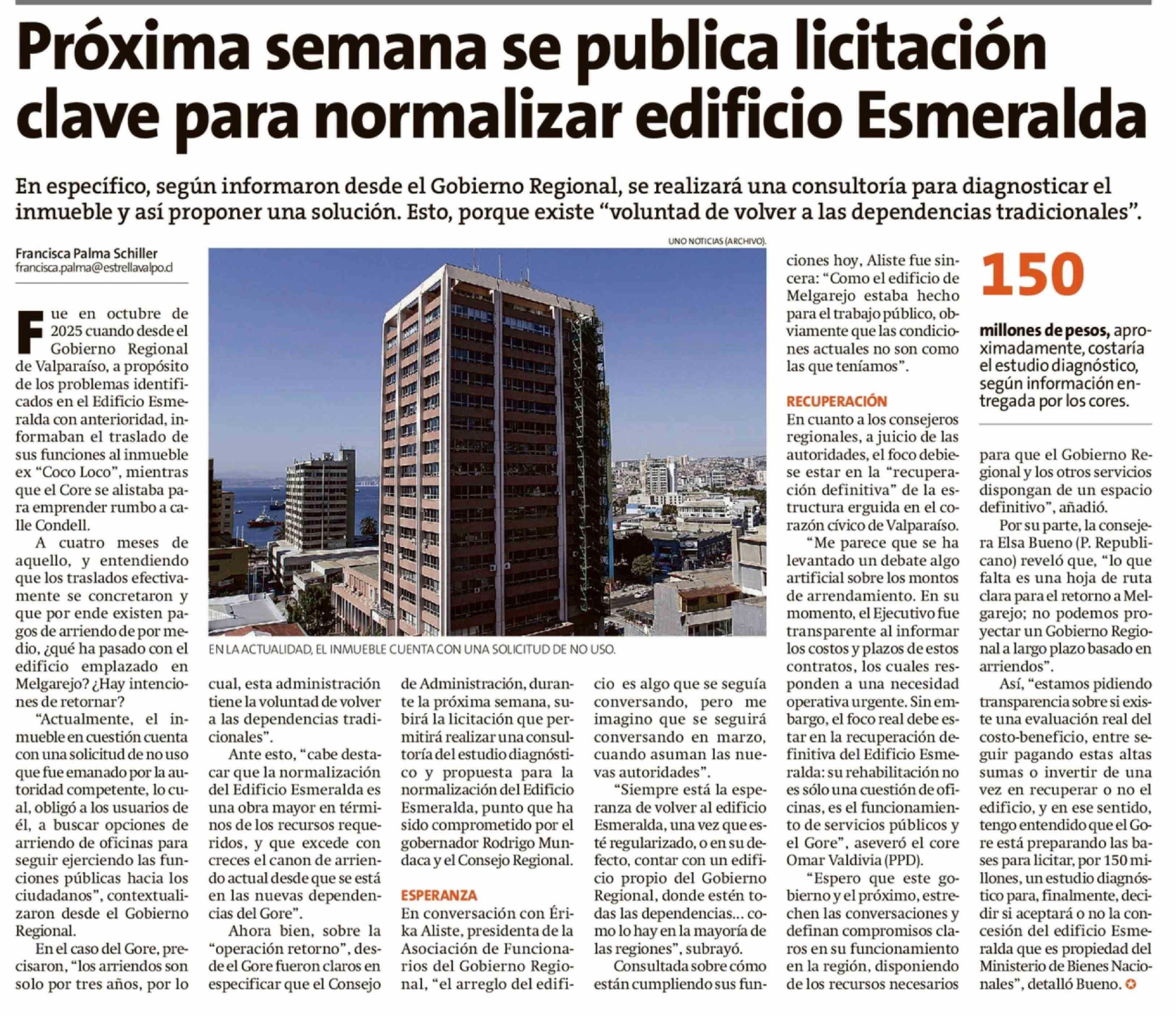 Próxima semana se publica licitación clave para normalizar edificio Esmeralda
