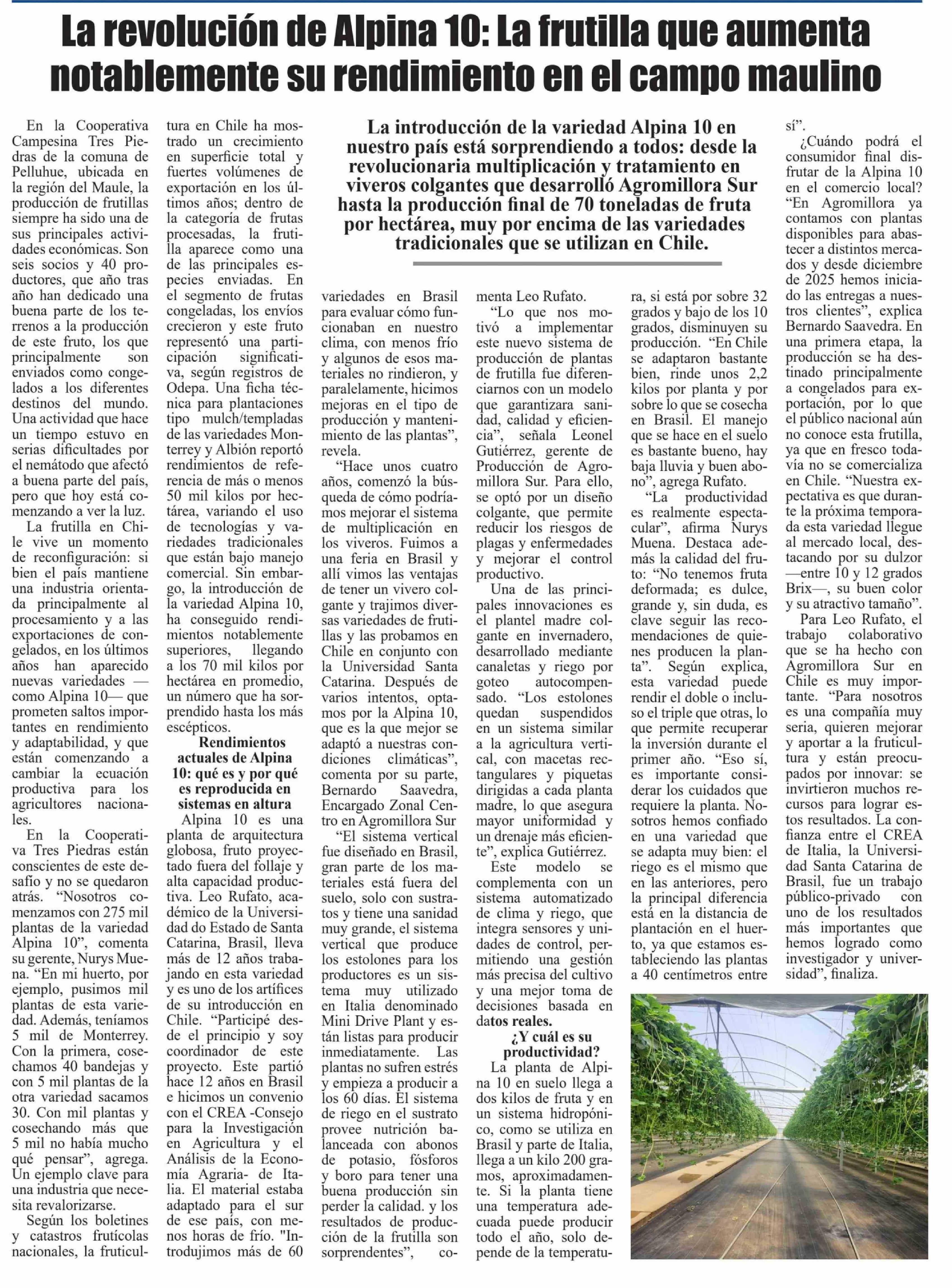 La revolución de Alpina 10: La frutilla que aumenta notablemente su rendimiento en el campo maulino