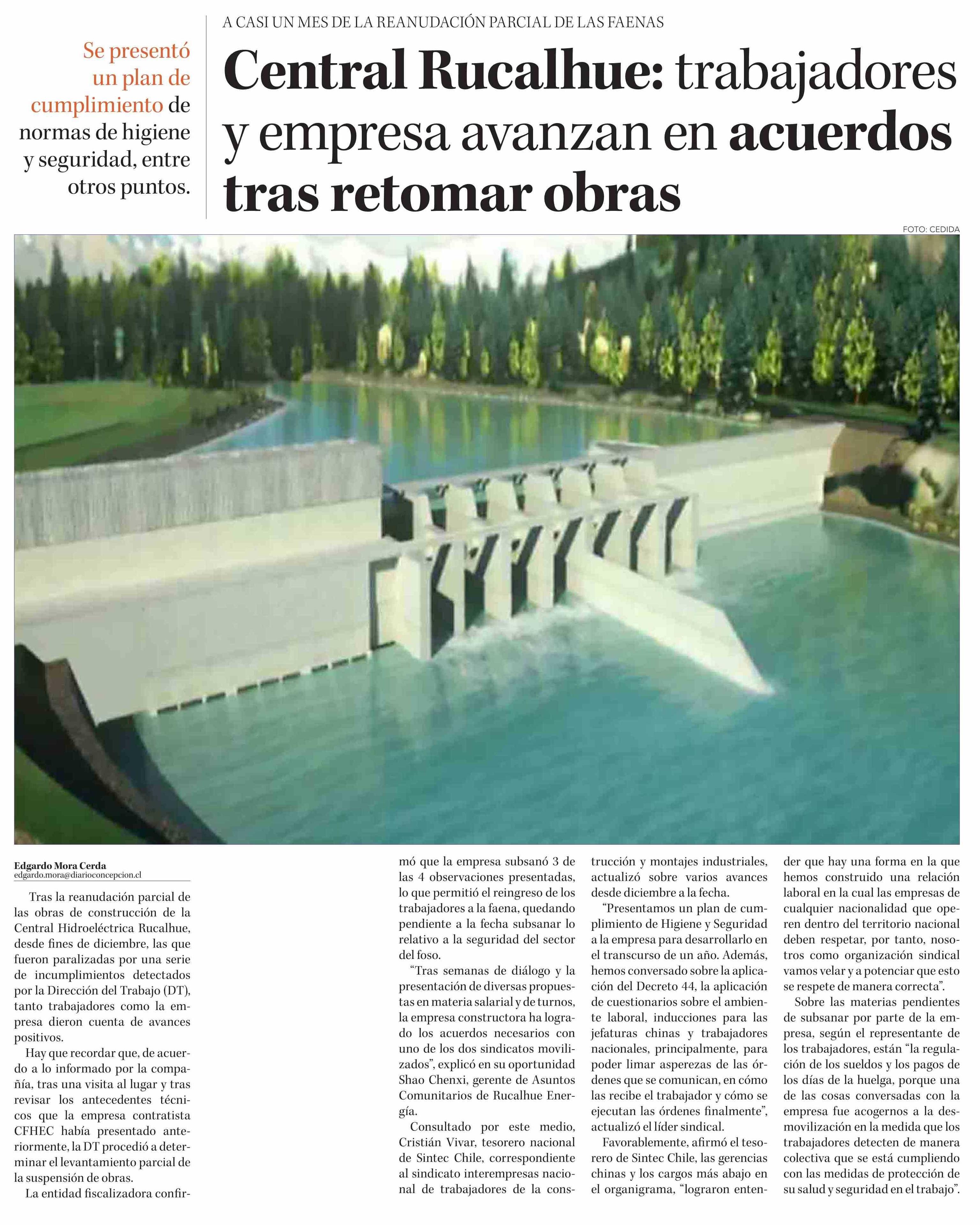 Central Rucalhue: trabajadores y empresa avanzan en acuerdos tras retomar obras