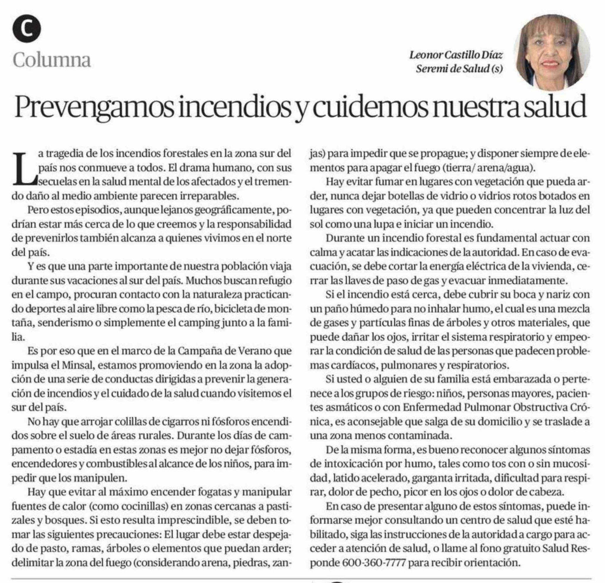Título: Columnas de Opinión: Prevengamos incendios y cuidemos nuestra salud