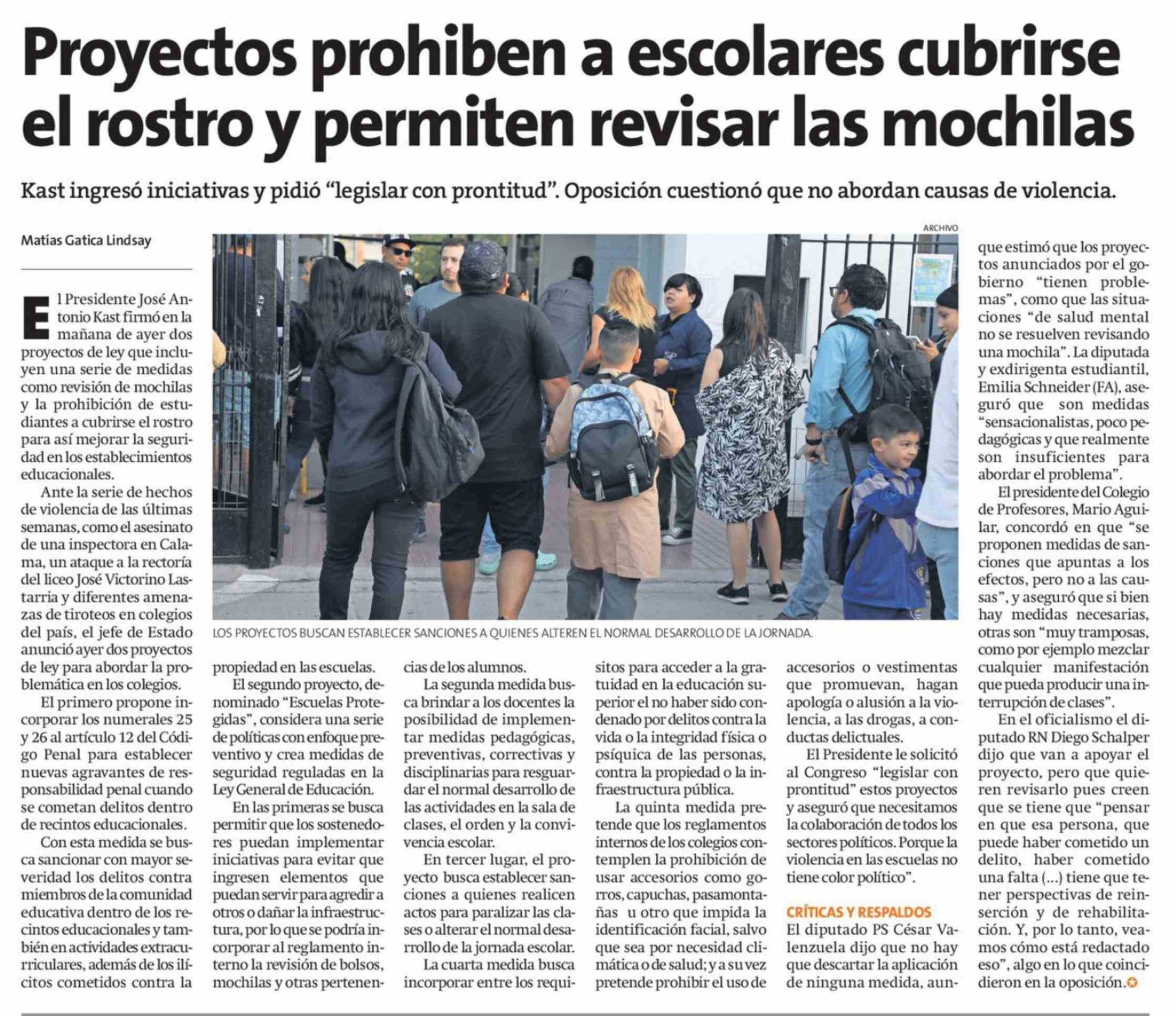 Proyectos prohiben a escolares cubrirse el rostro y permiten revisar las mochilas