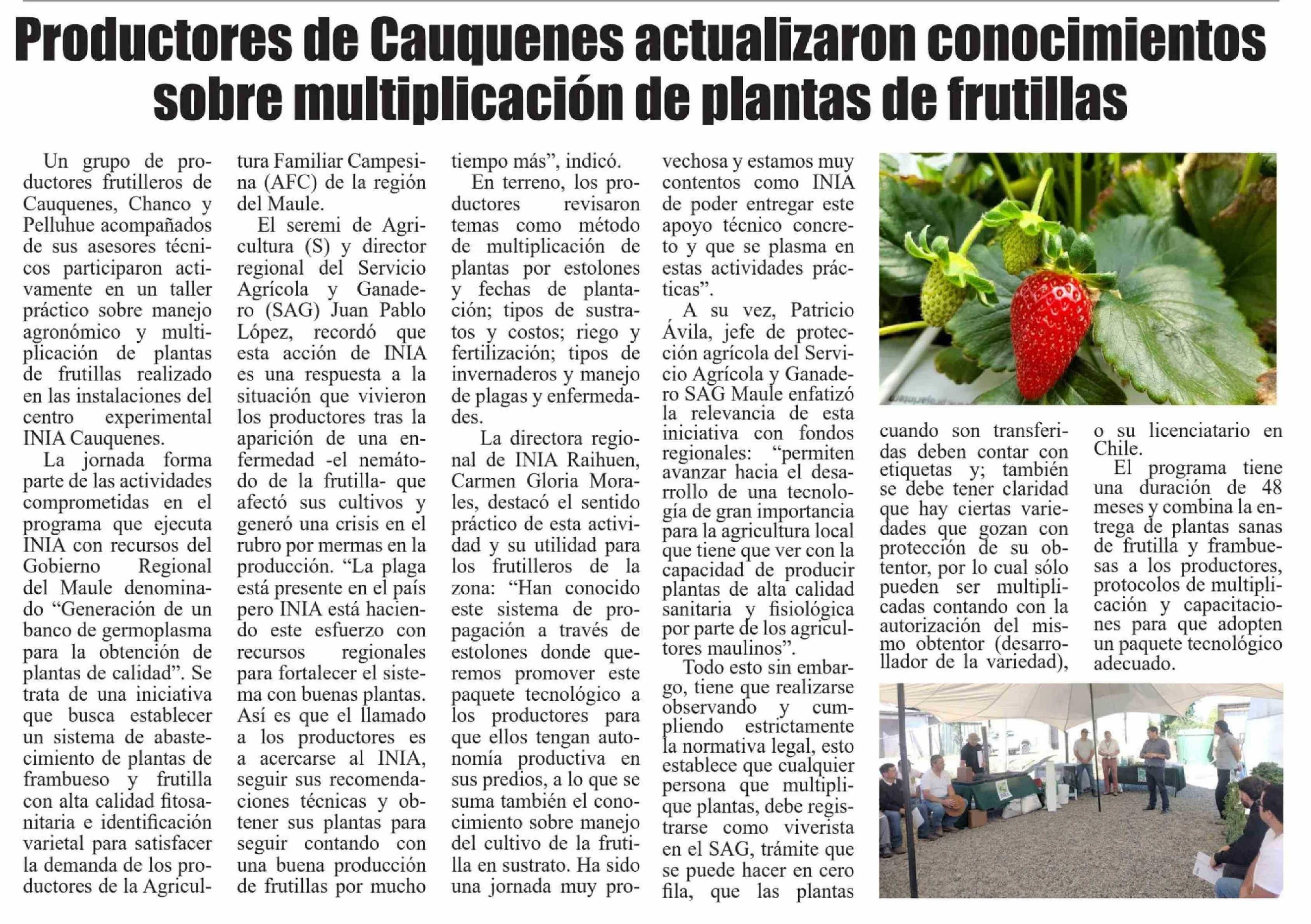 Productores de Cauquenes actualizaron conocimientos sobre multiplicación de plantas de frutillas