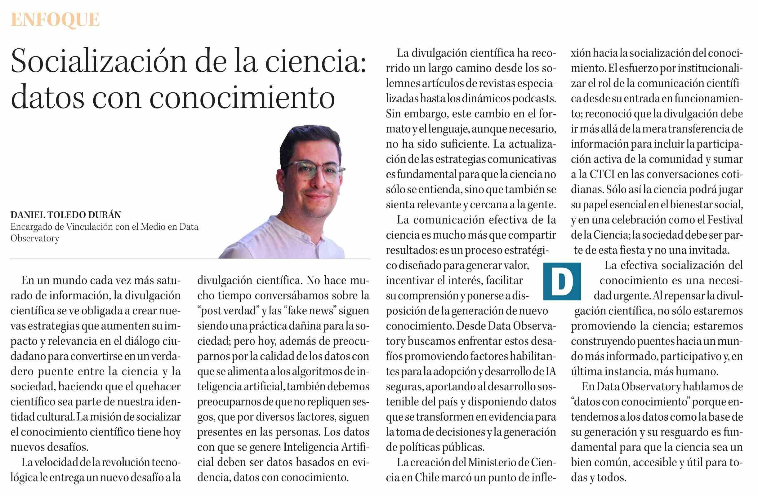 Columnas de Opinión: Socialización de la ciencia: datos con conocimiento