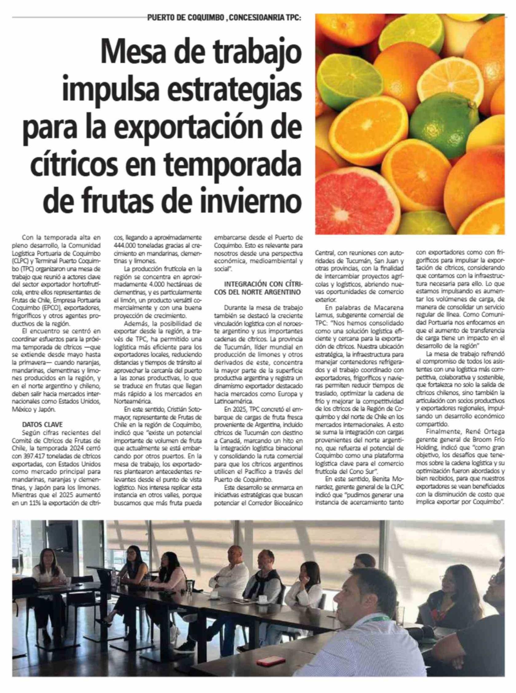 Título: Mesa de trabajo impulsa estrategias para la exportación de cítricos en temporada de frutas de invierno