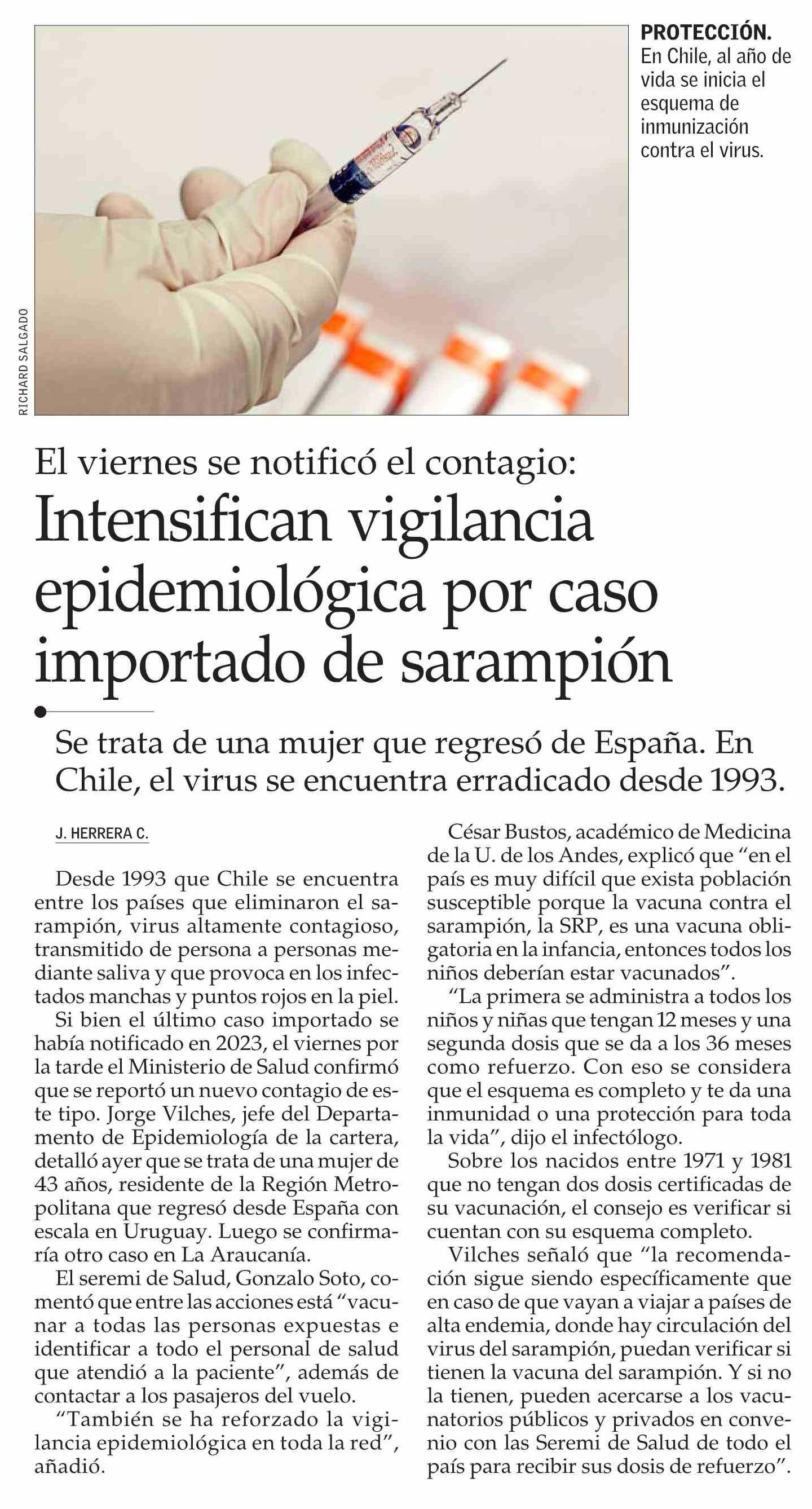 Título: Intensifican vigilancia epidemiológica por caso importado de sarampión