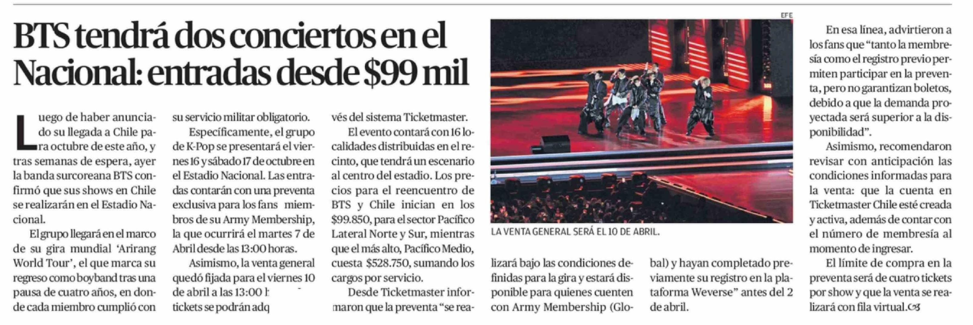 BTS tendrá dos conciertos en el Nacional: entradas desde $99 mil